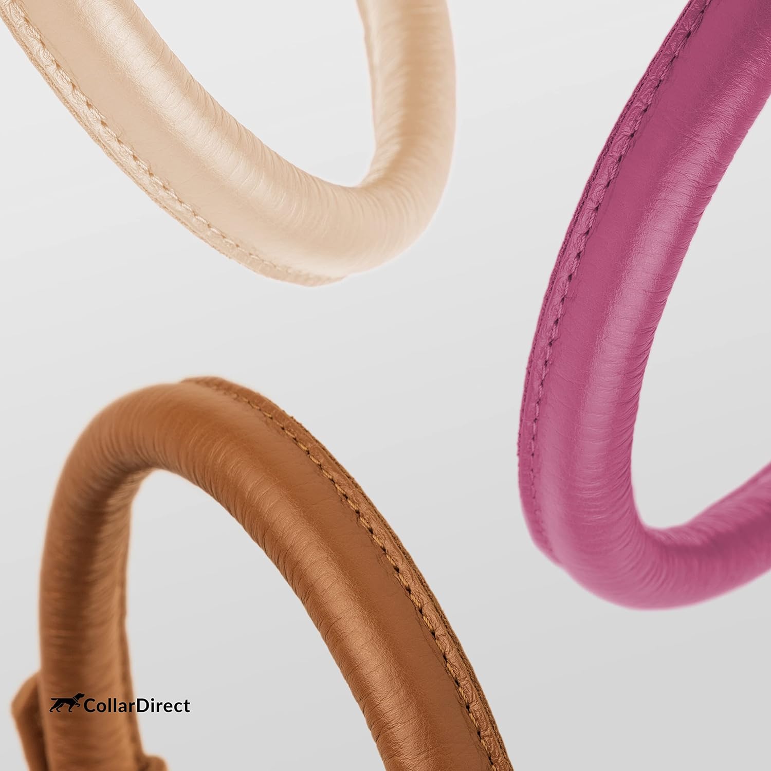 CollarDirect Rolled Leather Dog Collar, Soft Padded Round Puppy Collar, Handmade Genuine Leather Collar Dog Small Large Cat Collars 13 Colors (11-14 Inch, Pink Textured)