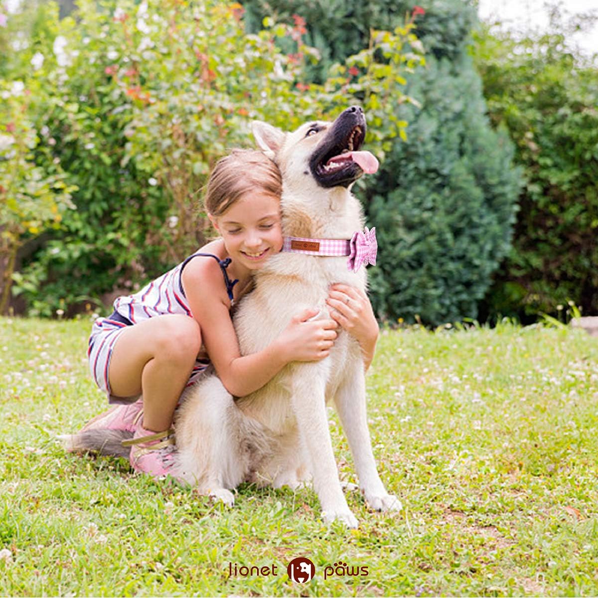 Lionet Paws Dog Collar with Bowtie, Comfortable Adjustable Cute Pink Gingham Bow Tie Collar for Female Puppies and Cats Gift, XS, Neck 8-12 inches