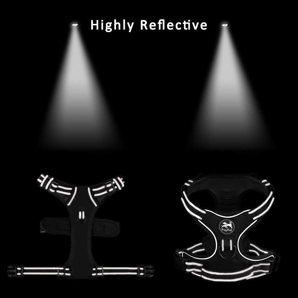 PoyPet No Pull Dog Harness, Reflective Comfortable Vest Harness with Front & Back 2 Leash Attachments and Easy Control Handle Adjustable Soft Padded Pet Vest for Small to Large Dogs (Pink,L)