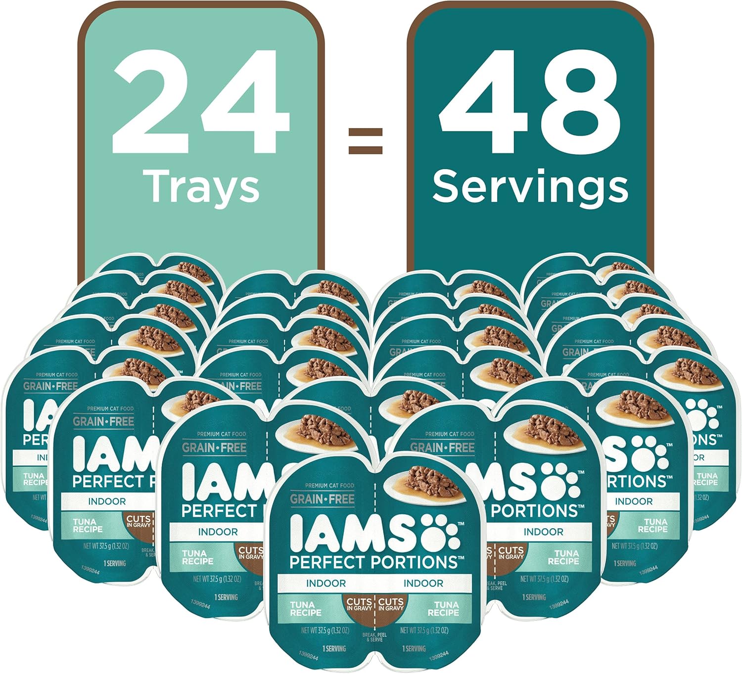 IAMS Perfect Portions Indoor Adult Wet Cat Food Cuts in Gravy, Tuna Recipe, 2.6 oz. Easy Peel Twin-Pack Trays (24 Count, 48 Servings)