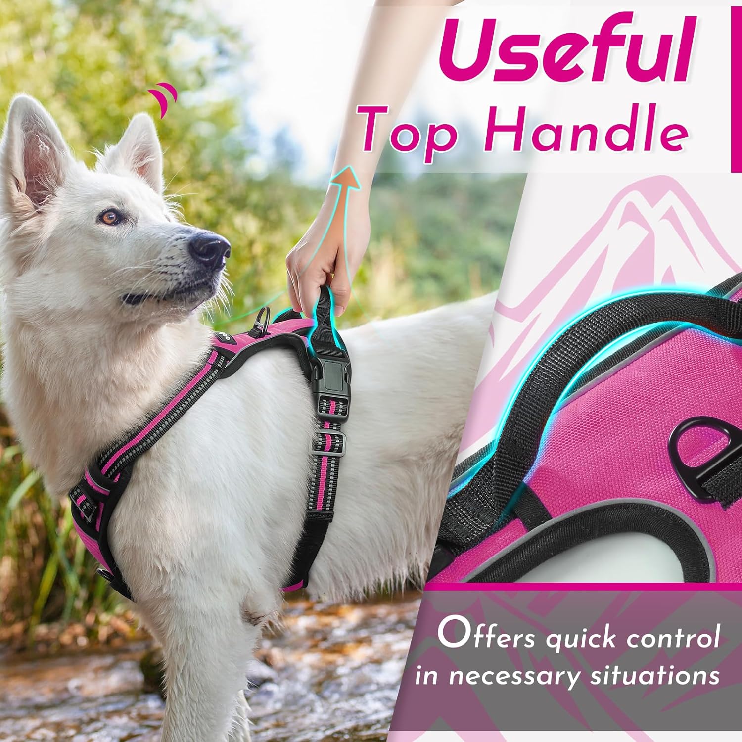 - No Pull & Better Control: Our no pull dog harness is typically designed with 2 sturdy metal leash rings for leash attachment. If you use the front hook on the chest, it will reduce the pulling, a perfect choice for dog training. The back leash ring is great for casual walks, jogging, hiking, etc.