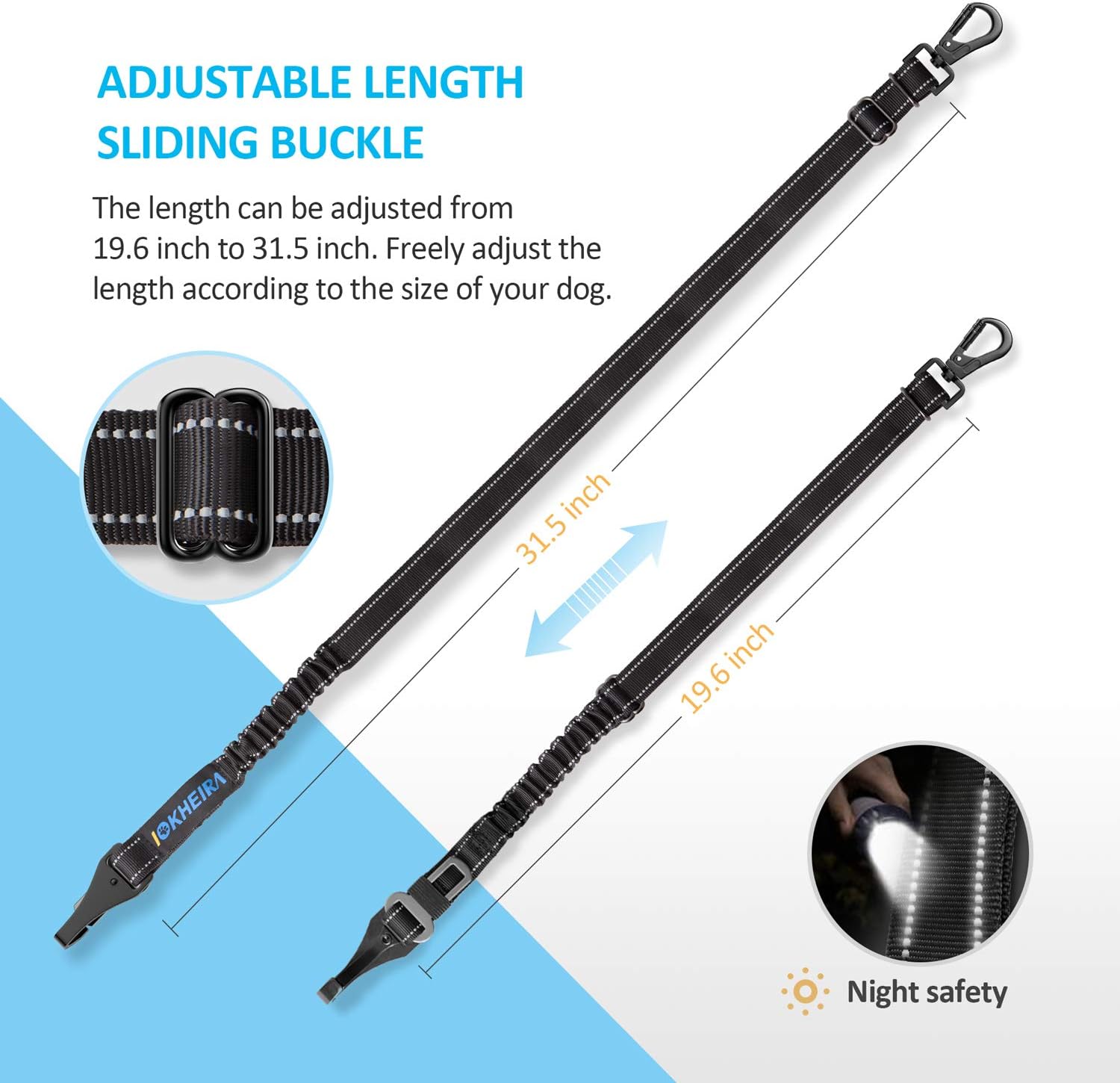- ◆◇Energy Absorption System: IOKHEIRA dog car harness seatbelt car tether has Up to 600N/m buffer ultra-high energy absorption design. This energy absorption system can reduce the impact on dogs to cope with emergencies effectively. That the length range of this product can be adjusted from 19inch to 31inch can be applied to dogs of different sizes.