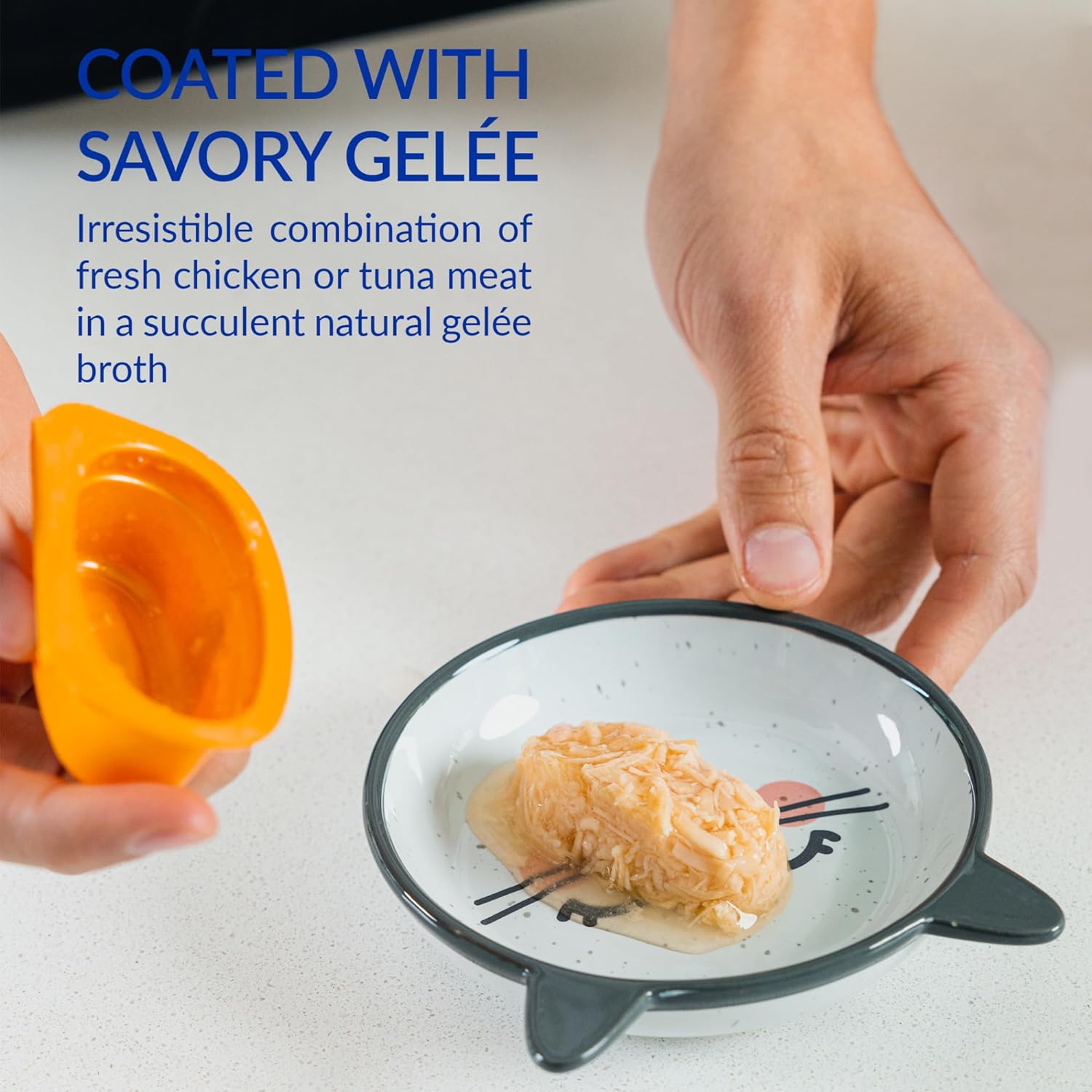 - TWICE THE TOPPERS: Twins are two single serve portions of shredded chicken suspended in a savory chicken broth gelée. Simply break apart, pull back the lid and use as a topper on wet or dry cat food or as a side dish/complement to their meal