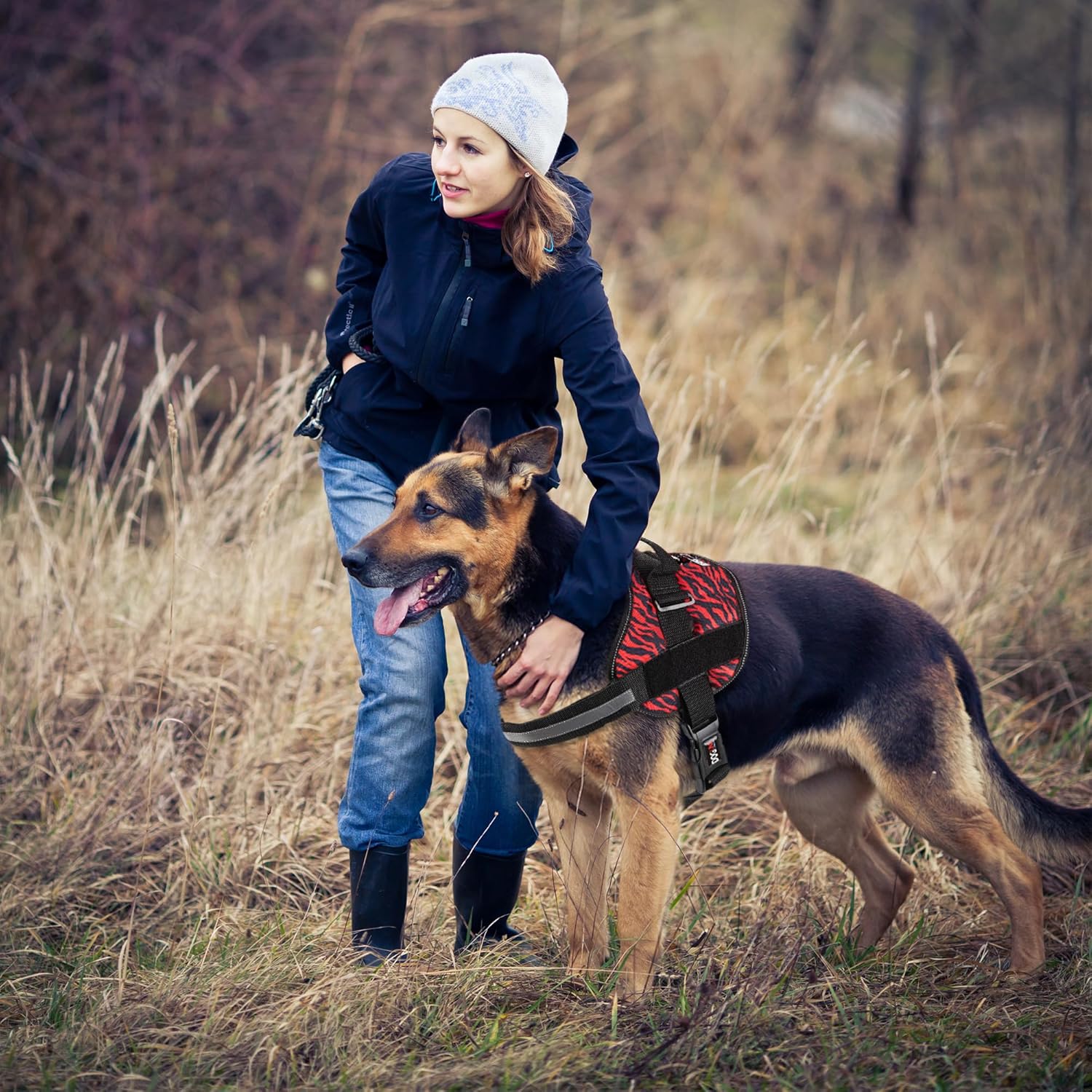 Dogline Dog Harness, Reflective No-Pull Adjustable Vest with Handle for Walking, Training, Breathable, No - Choke Harness for Small, Medium or Large Dogs Room for Patches Zebra Black/Red S 18"-24"