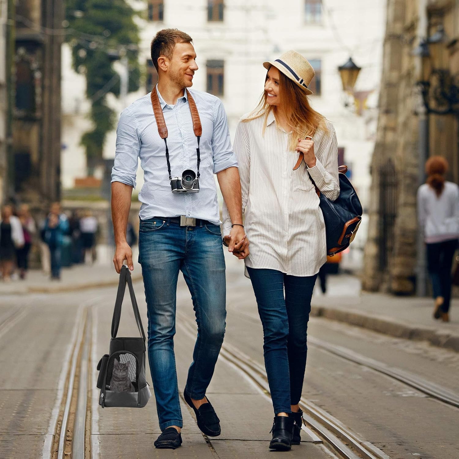 - 【New fashion design pet carrier】Johomviin’s excellent designers use the latest high-quality PU leather and waterproof Oxford cloth to match the design,Perfectly meet the daily travel needs of cats and small dogs.