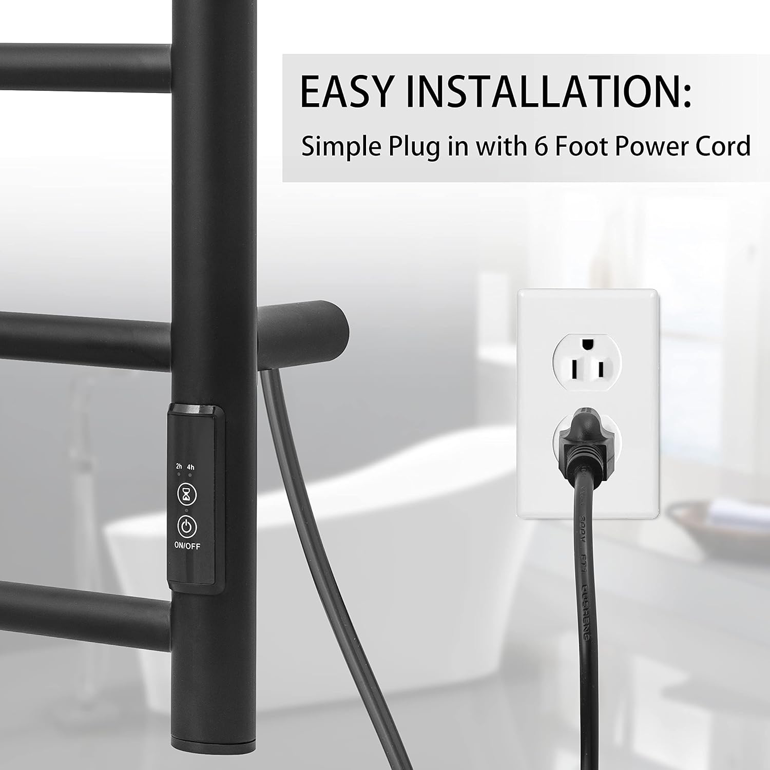 KEG Towel Warmer Wall Mounted with Built-in Timer 12 Bars Electric Stainless Steel Heated Towel Racks for Bathroom, Hot Plug-in Bath Towel Heater Matte Black