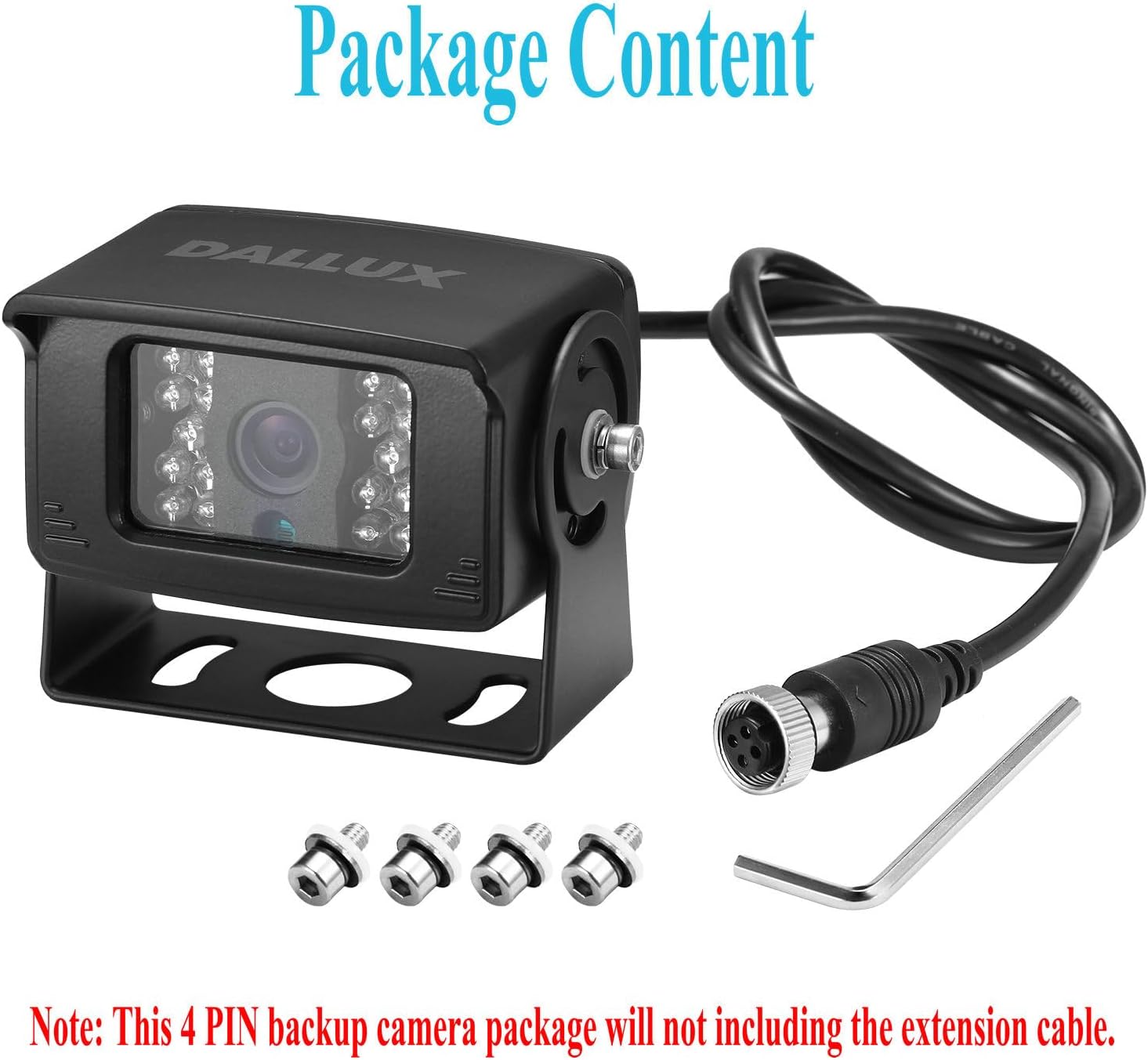 - Super HD Camera: Truck Backup Camera is 1/3" color CCD 800 TVL,976×576 pixels, it can give you real nature color image without color deviation,6 layer glasses lens with an ultra wide 130°viewing angle, the 4 PIN backup camera will provide a complete view from behind your vehicle.