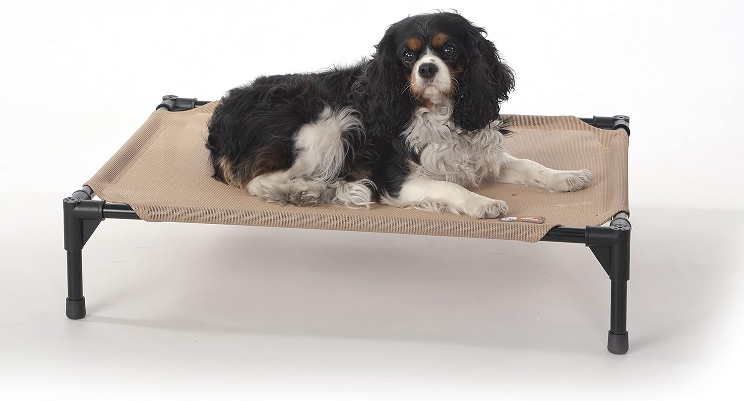 K&H Pet Products Cooling Elevated Dog Bed, Outdoor Raised Cot with Waterproof Breathable Mesh for Medium Dogs, Portable Place Bed with Heavy-Duty Metal Frame & Hammock Style Cover - Medium Tan