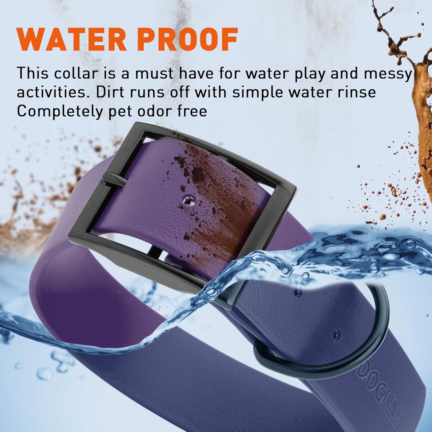 • Free Your Dog to romp in puddles and retrieve from lakes with the Dogline Biothane Waterproof Dog Collar. This water-repellent collar stays dry and odor-free, without shrinking or losing flexibility.