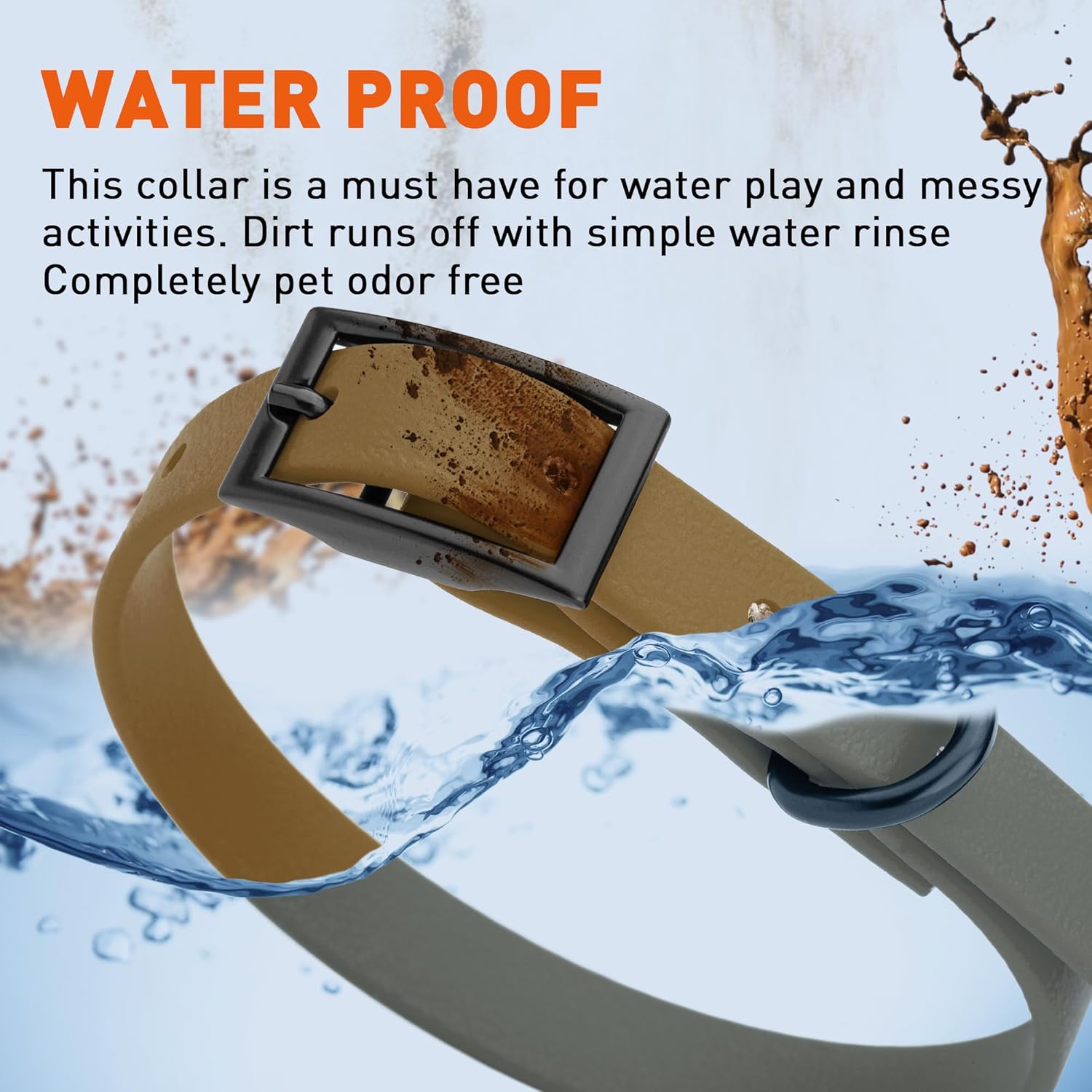 • Free Your Dog to romp in puddles and retrieve from lakes with the Dogline Biothane Waterproof Dog Collar. This water-repellent collar stays dry and odor-free, without shrinking or losing flexibility.
