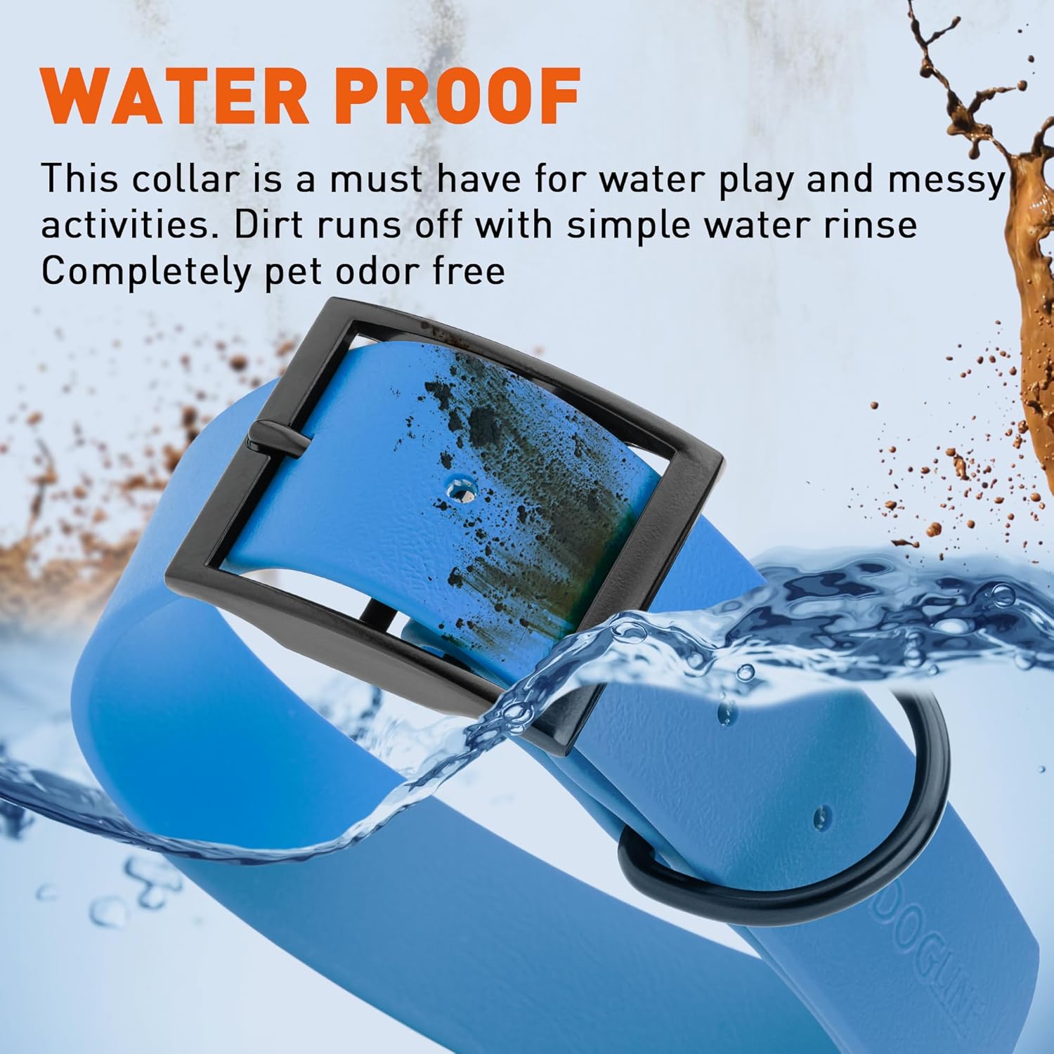 Dogline Biothane Waterproof Dog Collar Strong Coated Nylon Webbing with Black Hardware Odor- Proof for Easy Care Easy to Clean High Performance Fits Small Medium or Large Dogs, Cerulean Blue