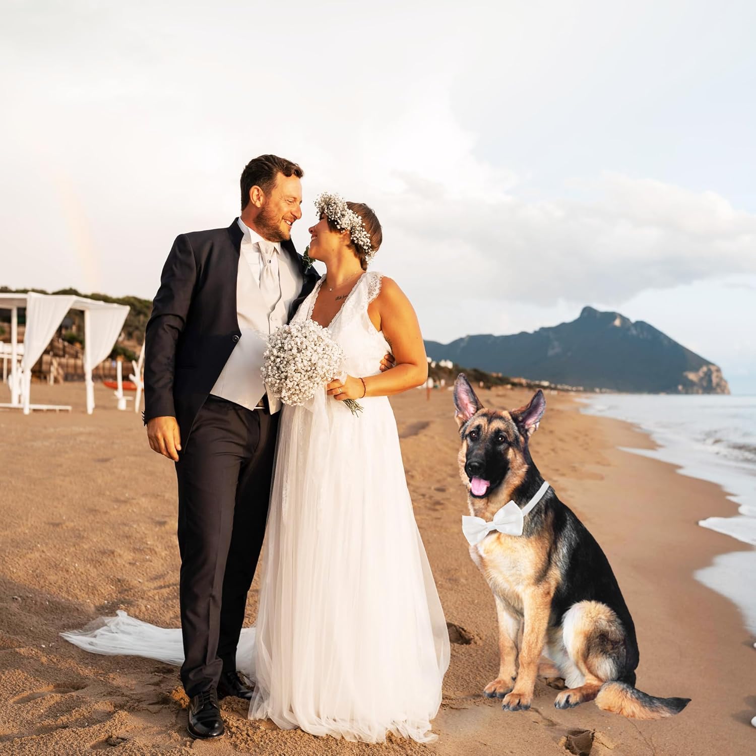 - SUITABLE ALL -- classy white tuxedo pet bowties fits dogs/cats of different breeds. Perfect dog bow ties for large dogs and medium dogs for either photography, parties, birthday, valentines, celebration, proms, Halloween, photoshoot, Christmas graduation pets grooming, or daily dog formal wear wear. Add a touch of elegant for our pet.