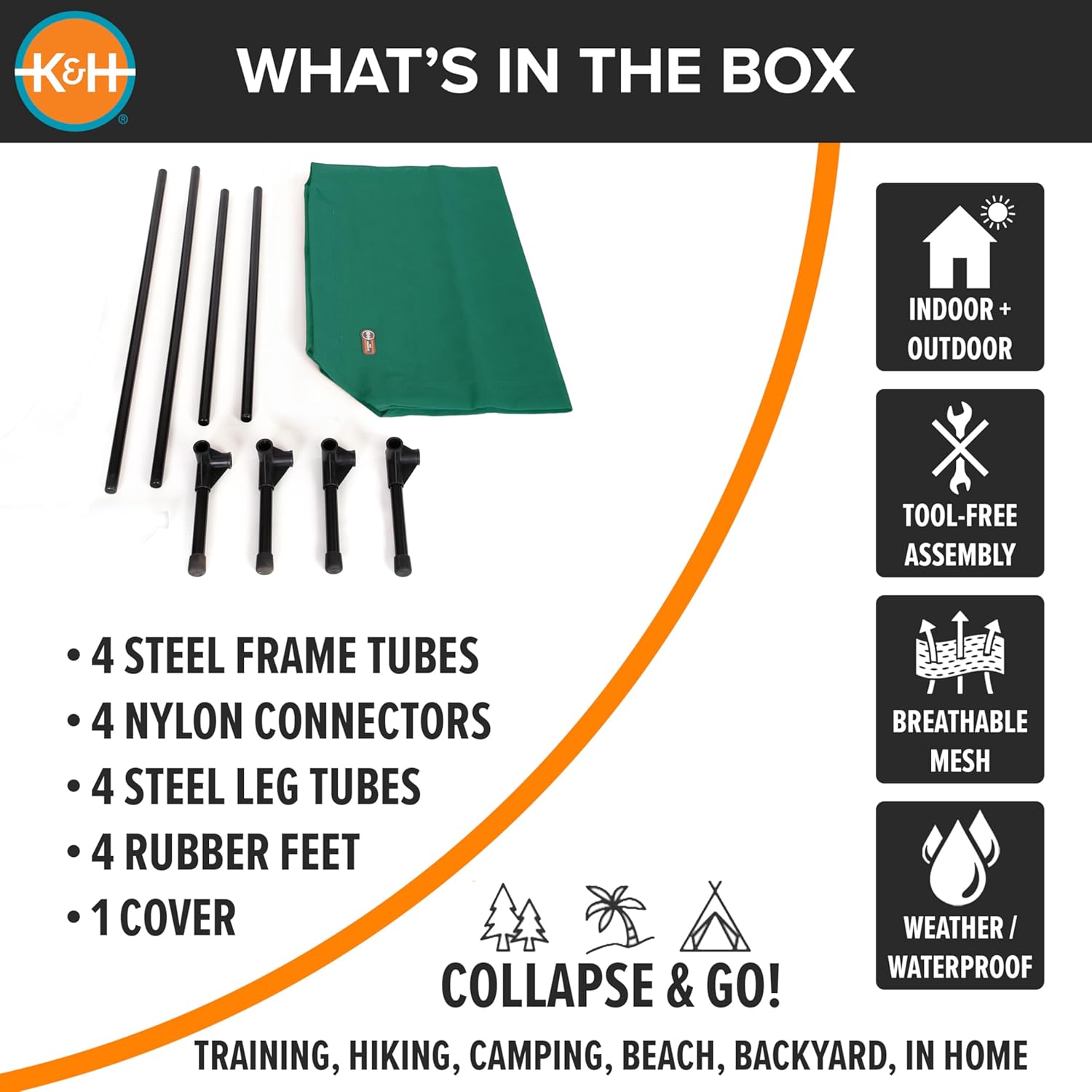 K&H Pet Products Cooling Elevated Dog Bed, Outdoor Raised Cot with Waterproof Breathable Mesh for Large Dogs, Portable Place Bed with Heavy-Duty Metal Frame, Big Hammock Style - Large Green
