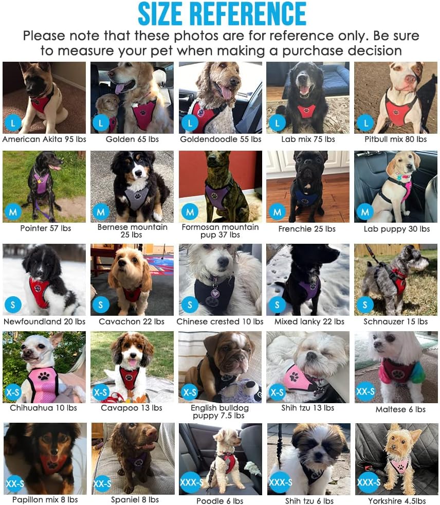 - 【Adjustable & Easy to Use】 --- The harness is easy to put on with two buckles on the chest part, and the four adjust buttons on the harness strap make it easy to adjust for a comfortable fit for small, medium, and large dogs. The breathable mesh chest vest harness is adjustable to relieve pressure and fit your pet perfectly. The seat belt is also adjustable and easy to hook up in the car or trunk.