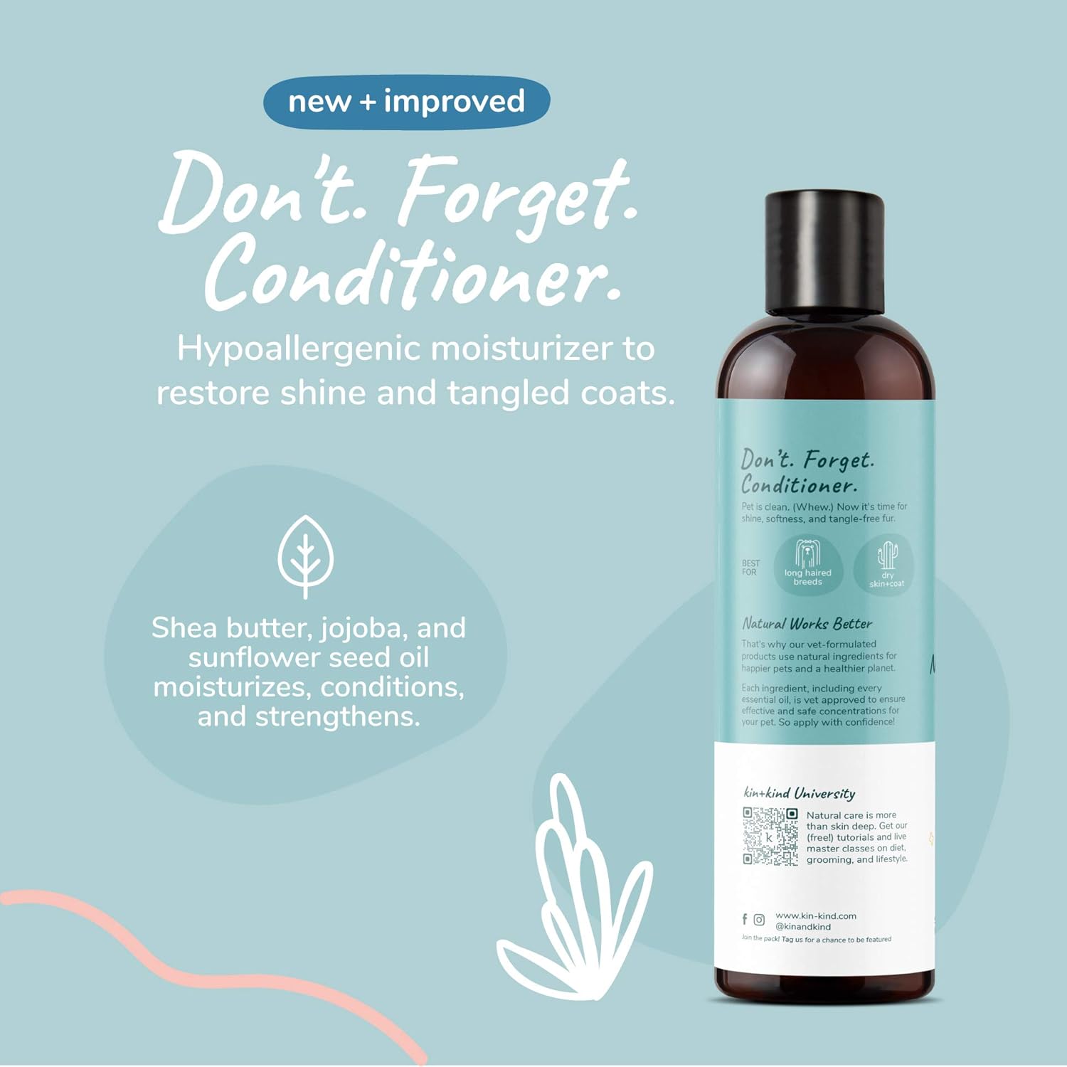 kin+kind Natural Pet Shampoo + Conditioner for Itchy Dogs and Cats - Dog Shampoo for Itchy Skin - Cat & Dog Shampoo and Conditioner with Activated Charcoal & Moisturizing Shea Butter - Made in USA