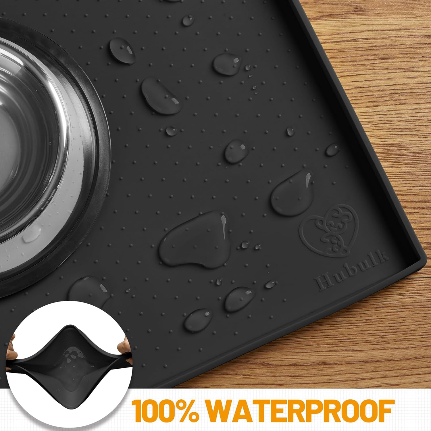 - Dish Washer Safe and Non-Slip Mat: Prevent pet messes with the Hubulk Waterproof Pet Food Mat with Super raised edges. Protect floors from pet bowls, gravity water dispensers, fountains, and elevated feeders.