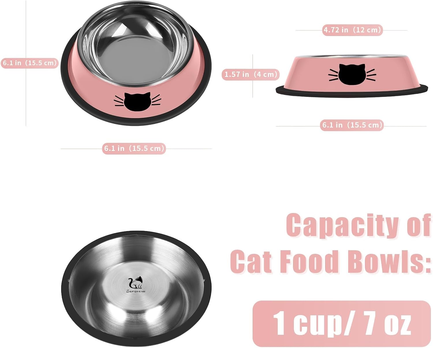 2Pcs Cat Bowls Non-Slip Stainless Steel Small Cat Food Bowls Unbreakable Thicken Cat Feeder 7 Oz Cat Dishes Suitable for Indoor Small Pets Removable Rubber Base Easily Clean Lovely Color