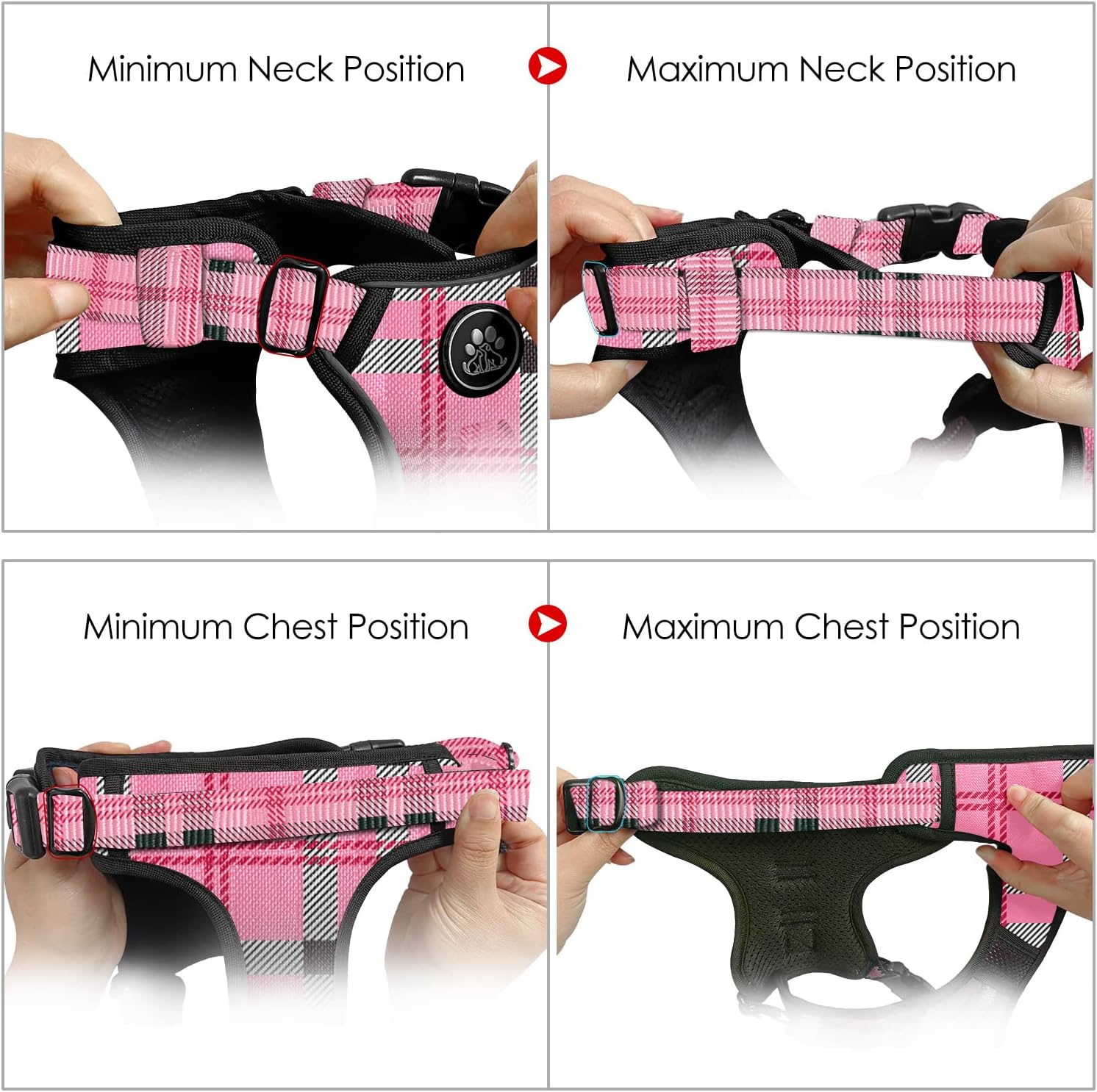 NESTROAD No Pull Dog Harness with Leash, Reflective No Choke Pet Vest Harness,Adjustable Soft Padded Dog Harness with Easy Control Handle for Large Dogs(Checkered Pink,Large)