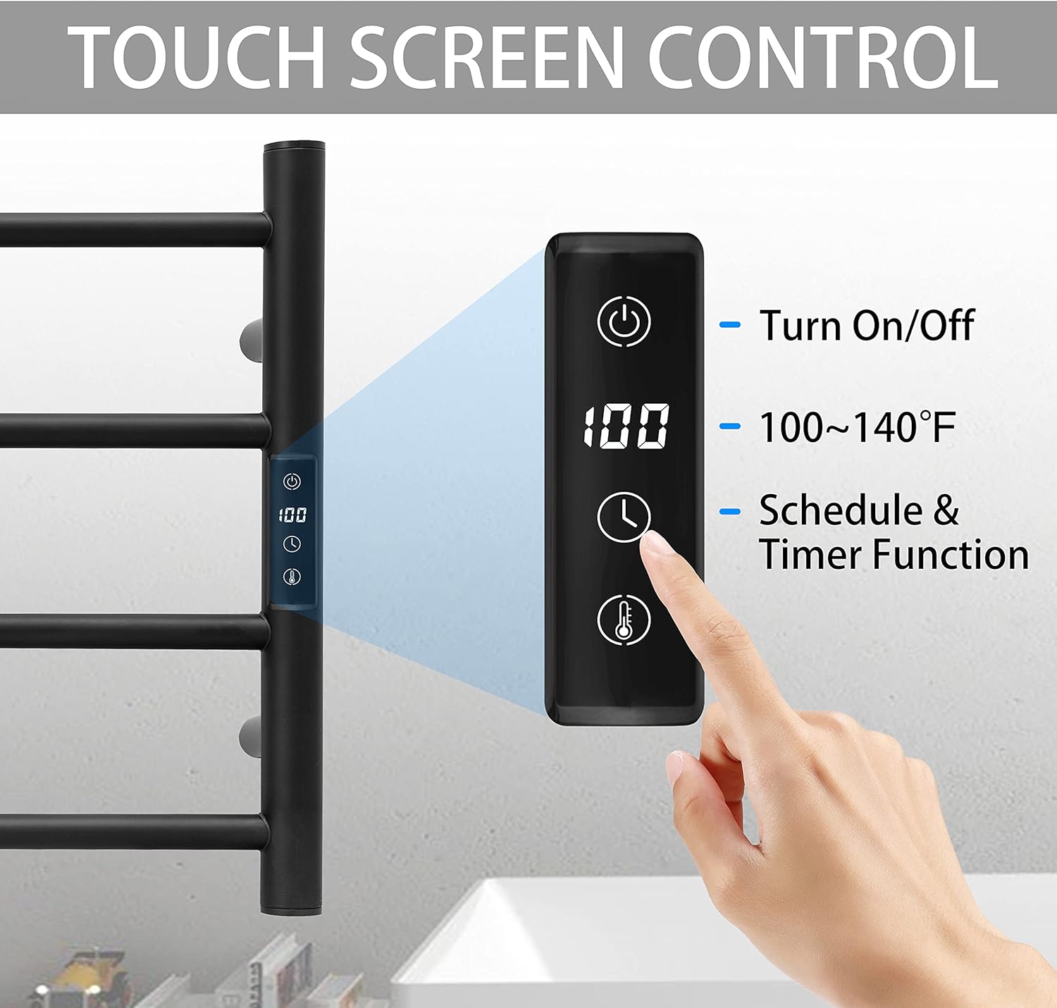 KEG Smart WiFi Towel Warmer Wall Mounted with Built-in Timer and Temperature Adjust Control, 4 Bars Electric Stainless Steel Heated Towel Racks for Bathroom Matte Black