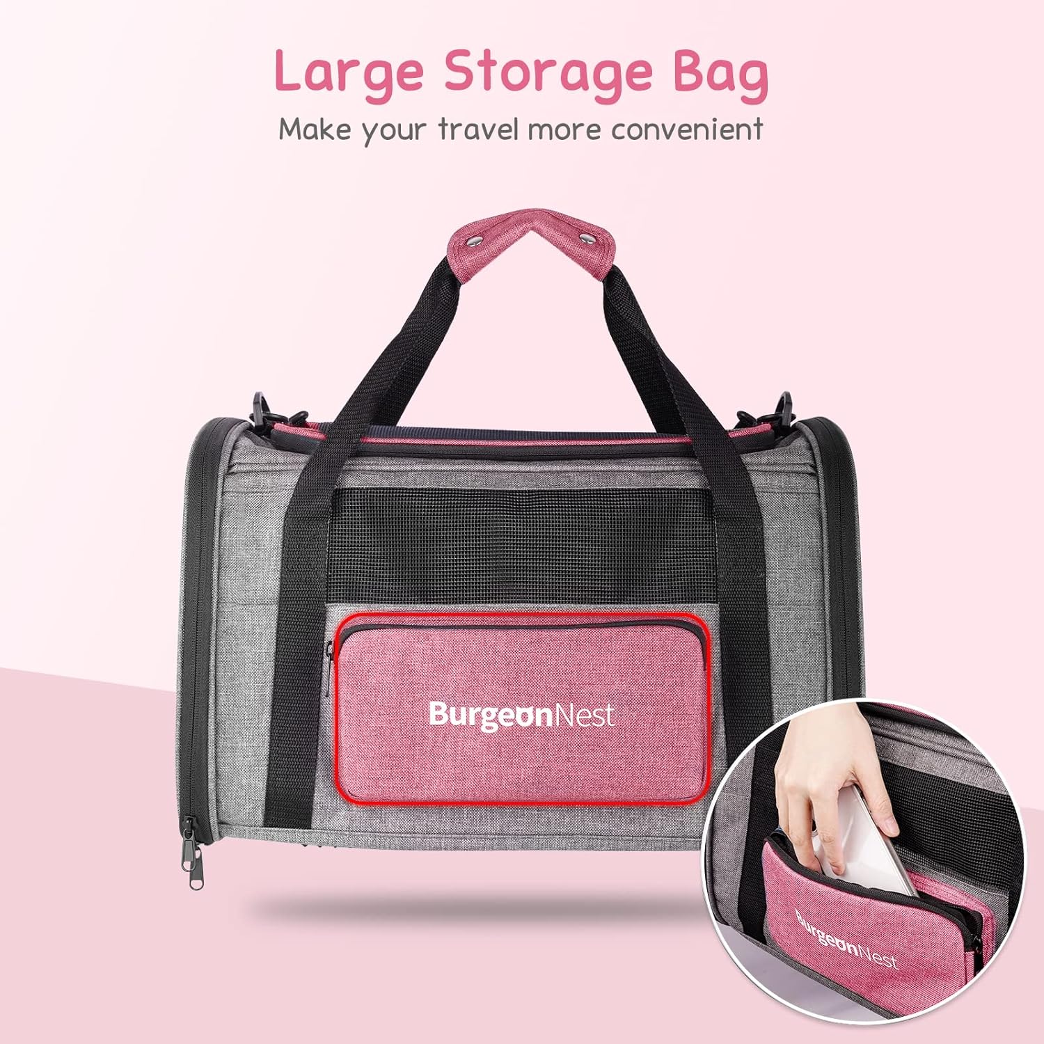 - Large Unique Side Bag: Storage bag is bright-pink, very fashional collapsible cat carrier. Break the dullness! Bag on the side can hold garbage bags, food or folding bowl for your pets.