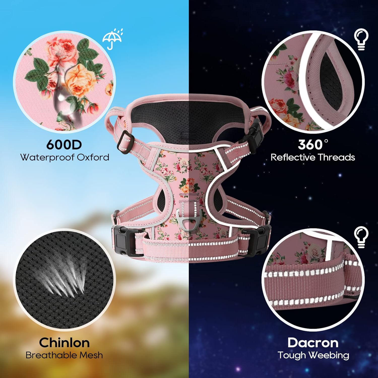 Timos Dog Harness, No-Pull Pet Harness with 2 Leash Clips, Adjustable Soft Padded Dog Vest, Reflective Outdoor Pet Oxford Vest with Easy Control Handle Pink XS