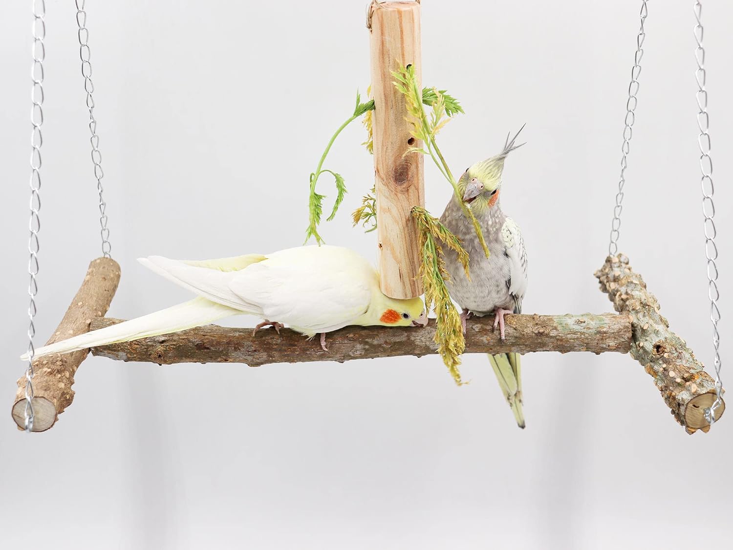 - 【Natural material】: The bird swing toy is made of wear-resistant and bite-resistant natural pepperwood, which is suitable for the bird's daily biting and beaking. The pepper wood is connected by pre-embedded bolts and nuts. The top chain and hook are made of stainless steel, which are durable and not easy to rust.