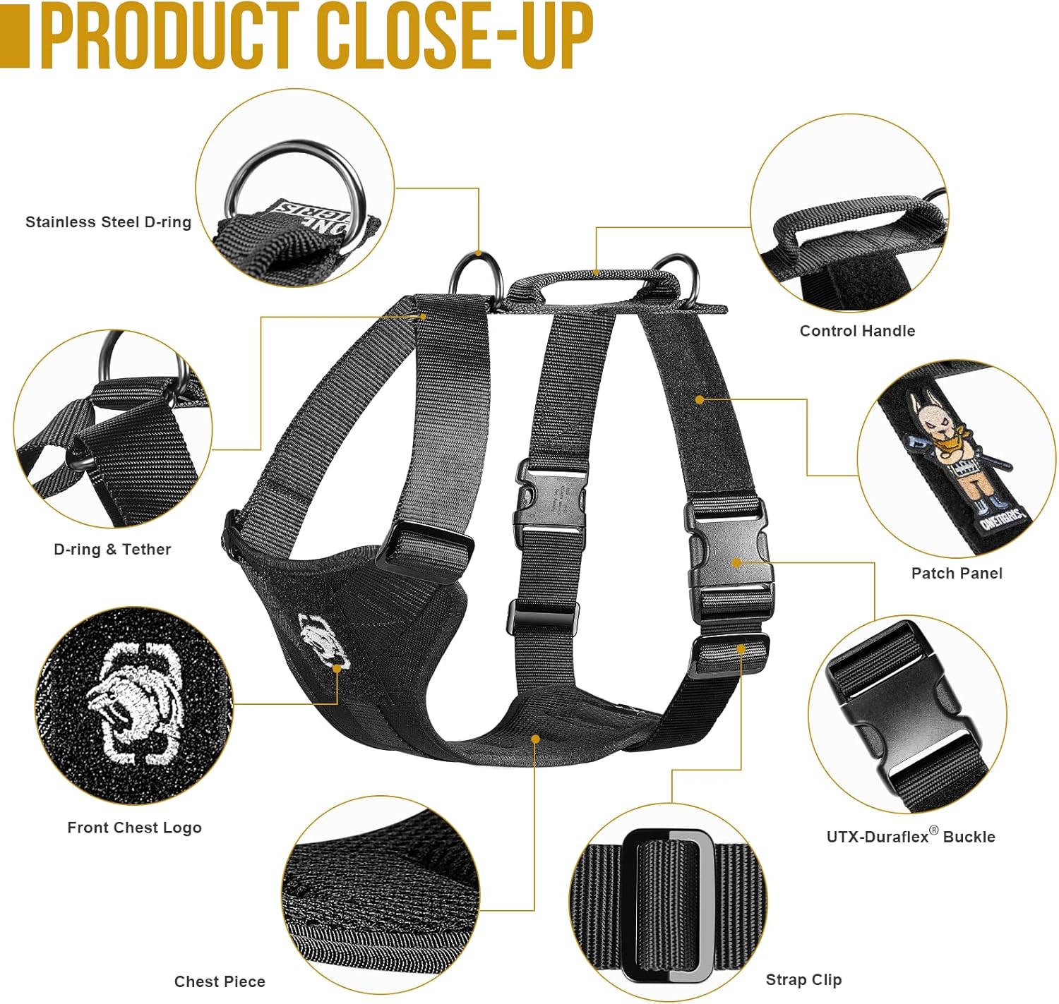 OneTigris Dog Safety Vest Harness, REX Car Use Dog Harness Adjustable Pet Harness with Leash for Medium Large Dogs(Black,L)