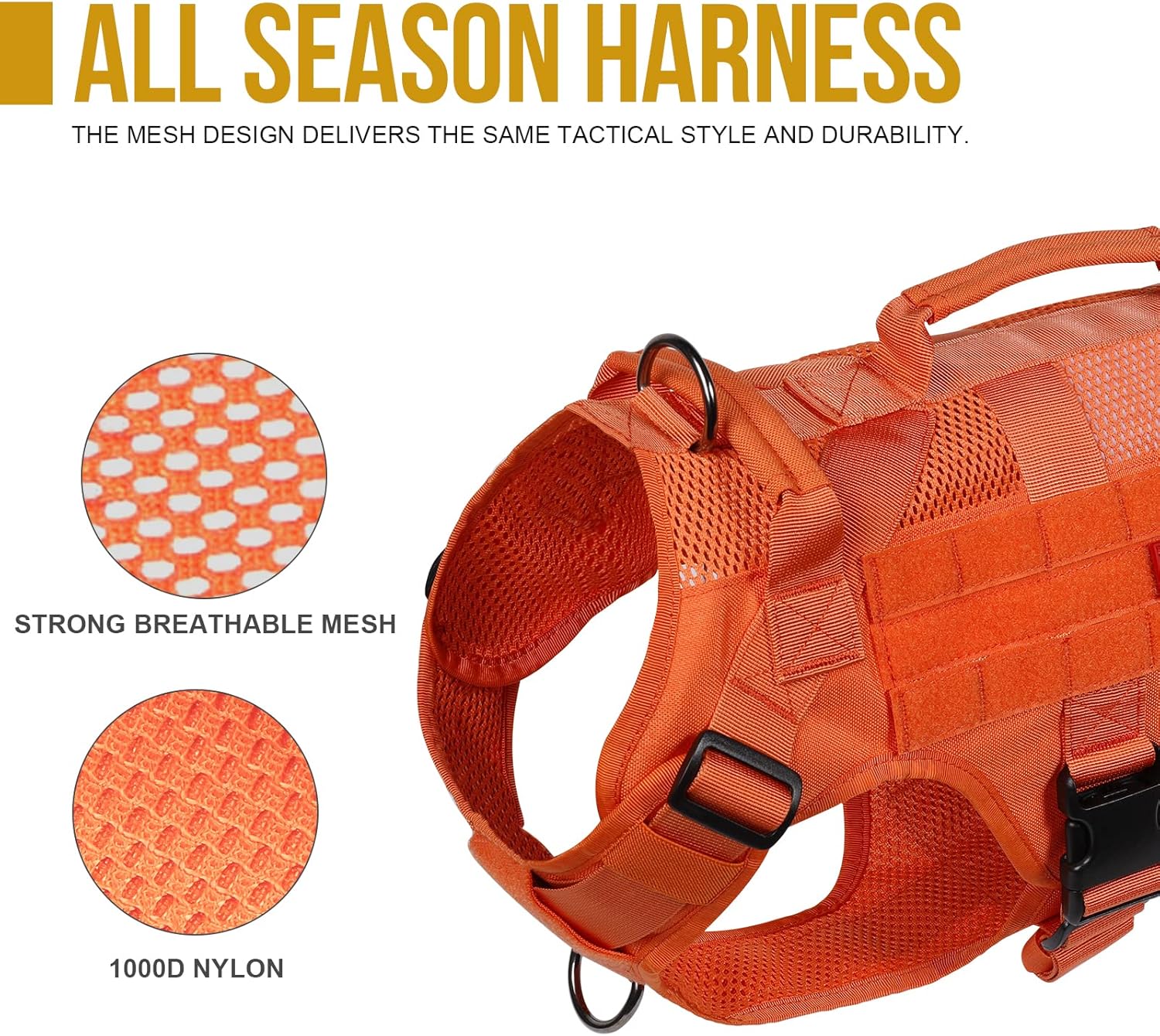 - [Tactical Mesh Design]: Breathable and quick to dry for all seasons, mesh design with the same tactical style and durability. Rugged 1000D nylon offering great dirt/water/abrasion resistance.