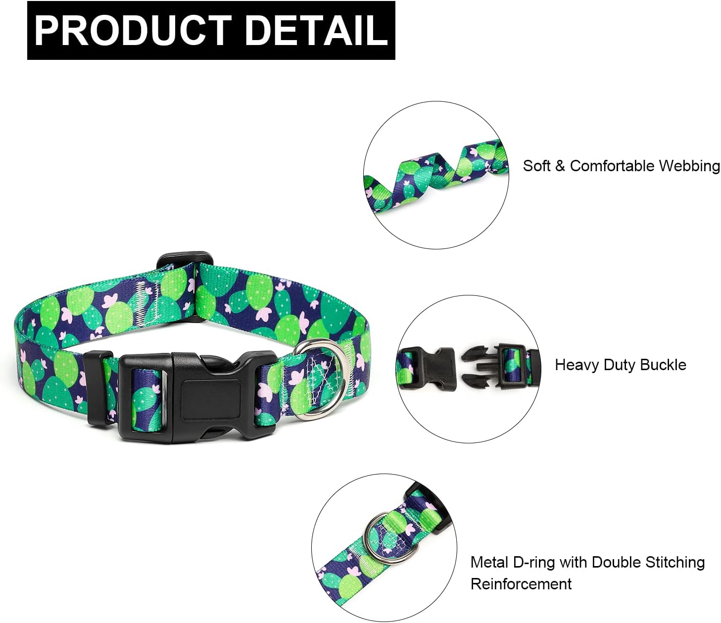 Mercano Adjustable Dog Collar - Special Design Patterns, Soft Nylon Comfortable Durable Pet Collar for Small Medium Large Dogs (L, Cactus)