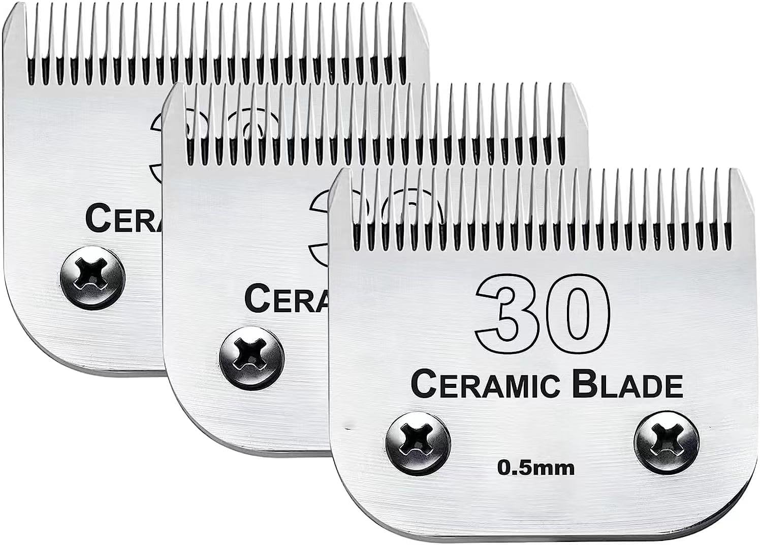 - 【SIZE】:30# dog clipper blade Cutting length 1/50"(0.5mm),commonly used pet blade in summer,made of Ceramic Blade & Stainless Steel Blade