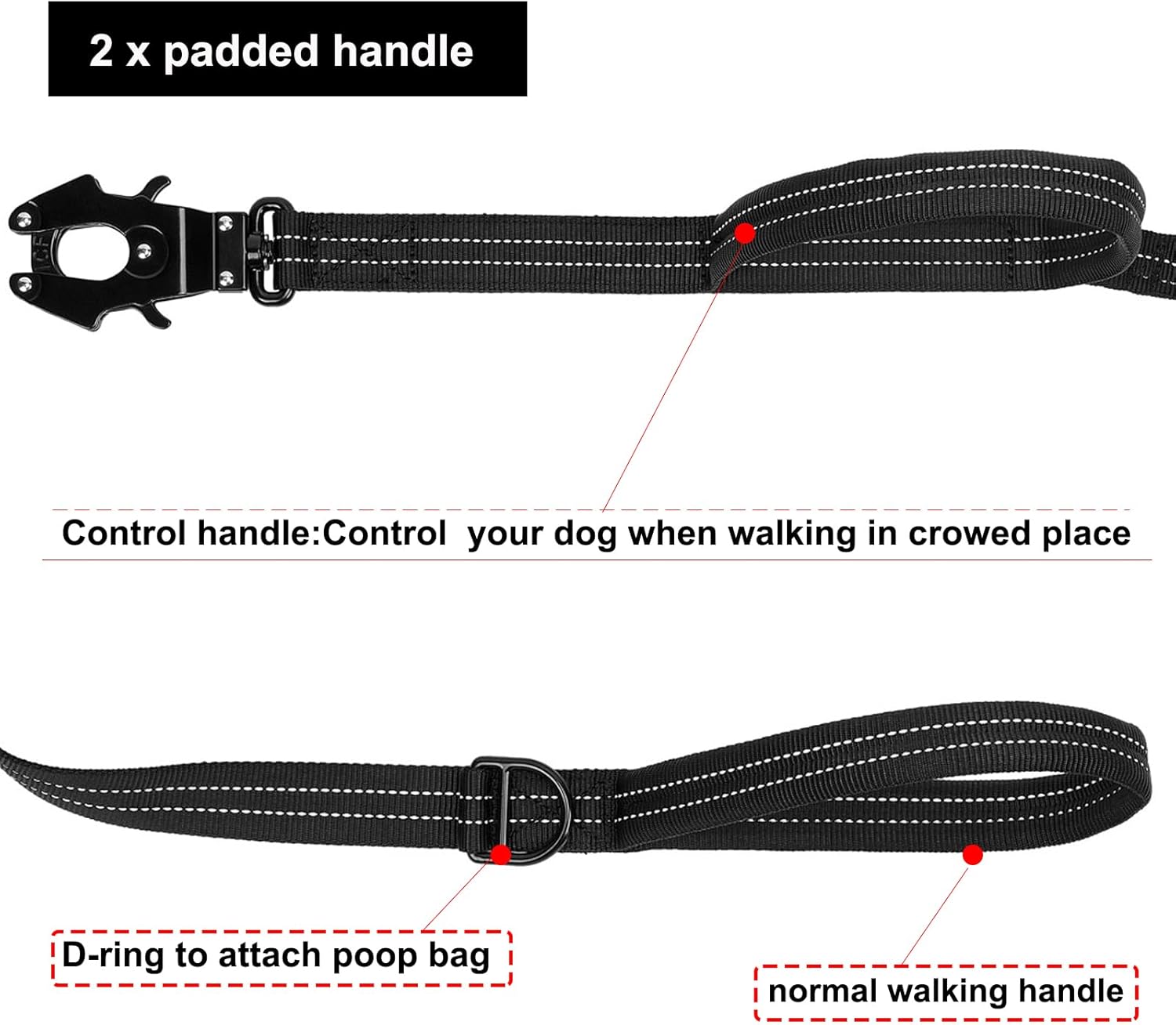 ICEFANG Tactical Dog Leash,K9 Training Walking Bungee Lead with 2 Control Handle,Heavy Duty Quick Release Metal Clasp,Hands Free D-Ring for Medium Large Dogs (4ft,Reflective Black)
