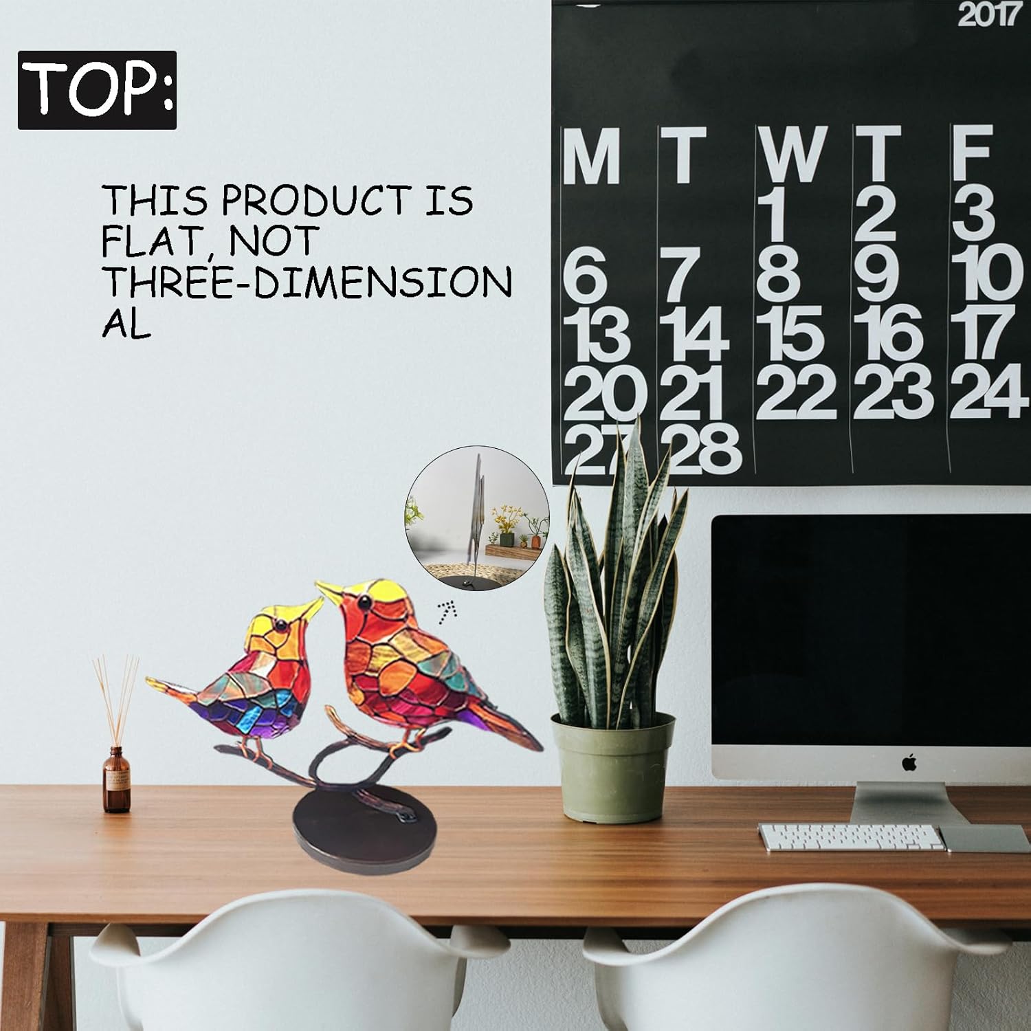2Birds on a Branch, Metal Desktop Plane Shape Decorations, Home Bird Decorations for Office, Window, Aviary, Garden, Gifts for Bird Lovers, Boxed Set.