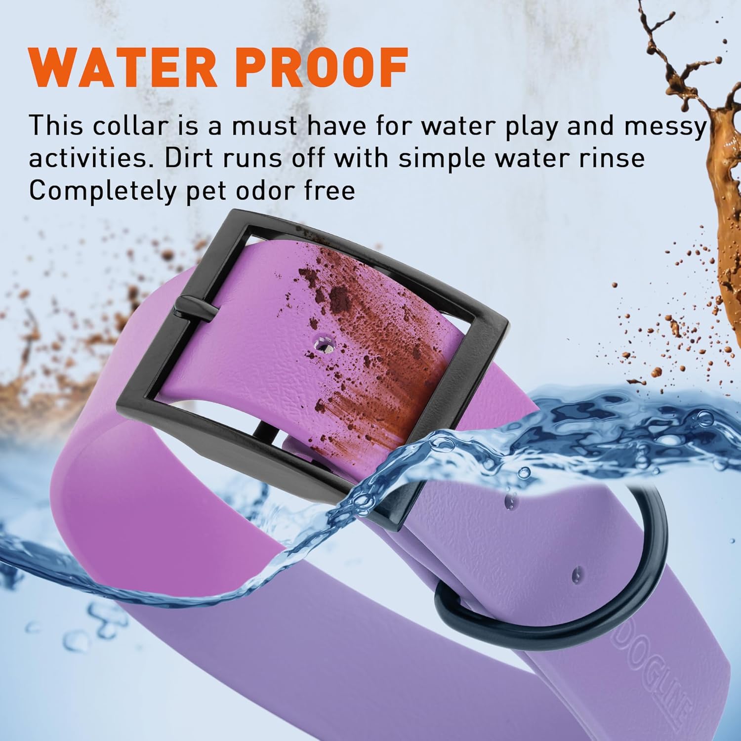 Dogline Biothane Waterproof Dog Collar Strong Coated Nylon Webbing with Black Hardware Odor- Proof for Easy Care Easy to Clean High Performance Fits Small Medium or Large Dogs, Amethyst Purple