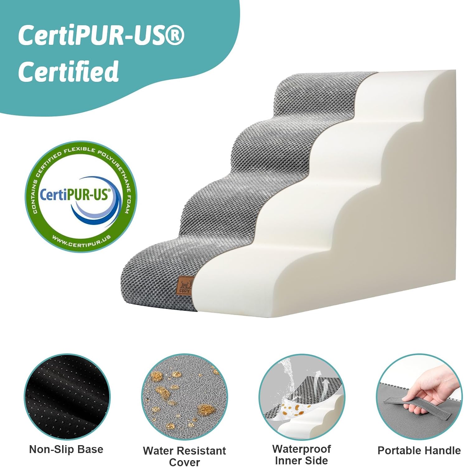 - NOTE & CHOOSE: This staircase is not suitable for large dogs. The inner foam is not washable. Note: Please cover the cover before the sponge is fully fluffy to avoid being unable to cover. 2 layers are suitable for chairs, 3 layers are suitable for sofas or couches, 4 layers are suitable for beds, and 5 layers are suitable for high beds or cars. Please be sure to confirm whether the size is suitable for you first