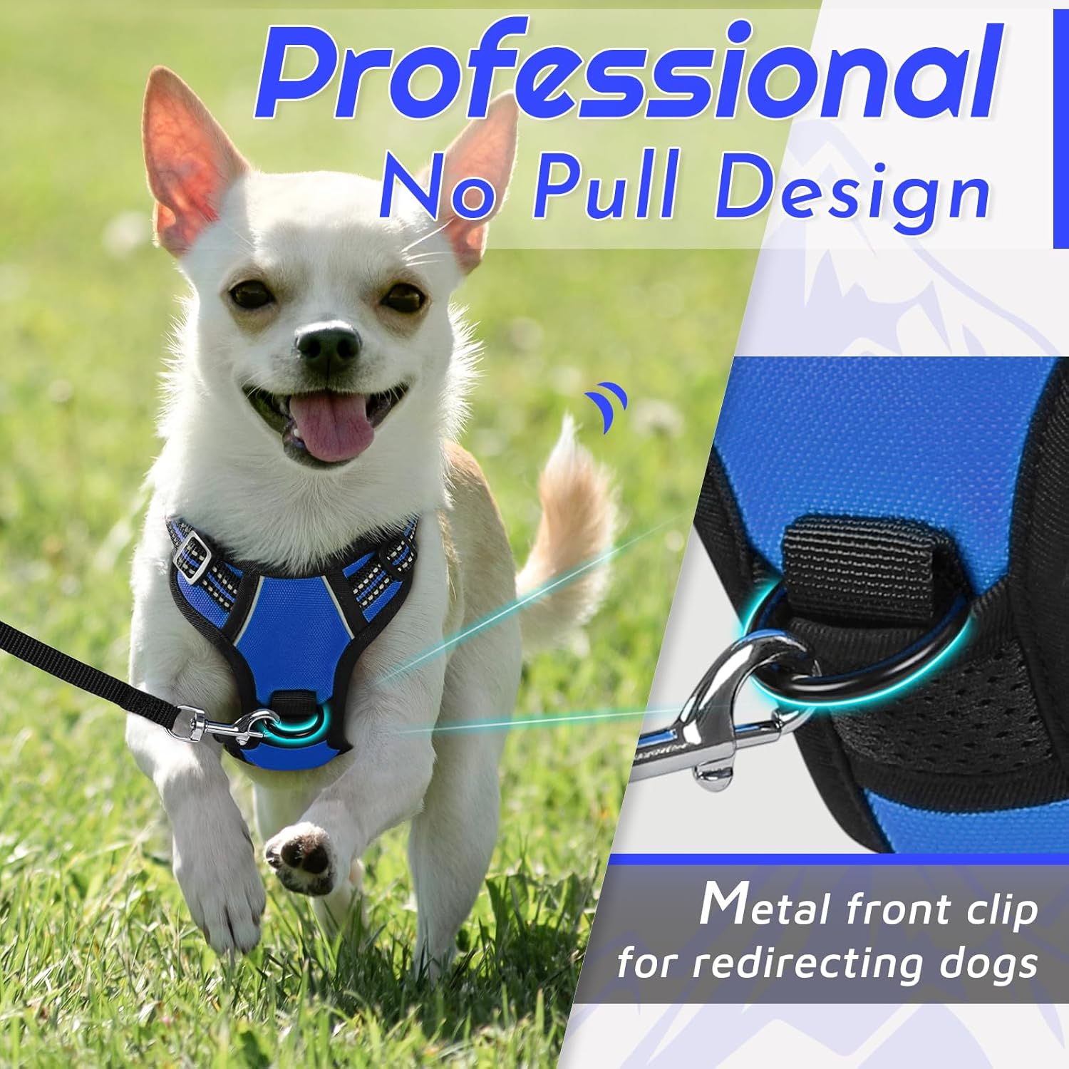 Eagloo Small Dog Harness No Pull, Service Vest with Reflective Strips and Control Handle, Adjustable and Comfortable for Easy Walking, No Choke Pet Harness with 2 Metal Rings, Blue, XS