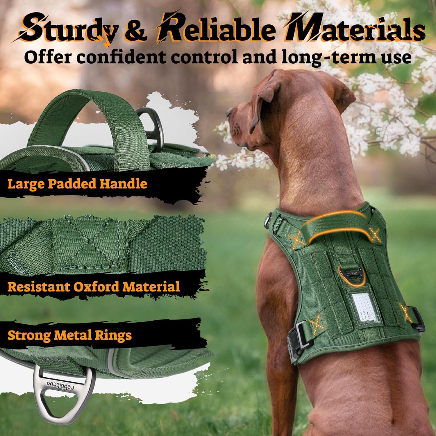 rabbitgoo Dog Harness for Large Dogs No Pull, Tactical Service Pet Vest with Molle and Control Handle, Adjustable and Reflective Military Harness for Easy Walking and Training, Green, XL