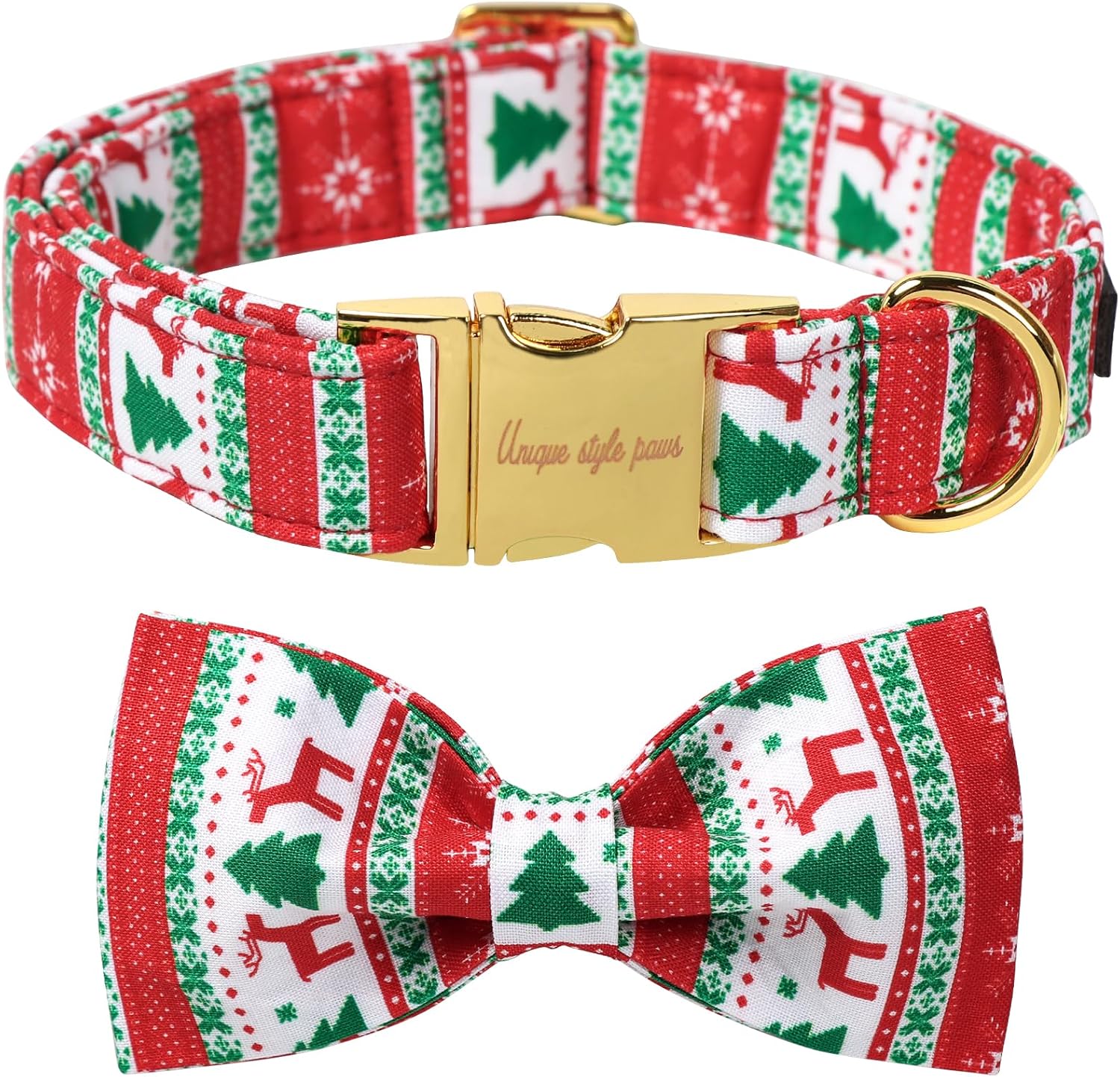 Unique Style Paws Christmas Day Dog Collar with Bow Christmas Tree Cotton Puppy Collars for Small Medium Large Dogs