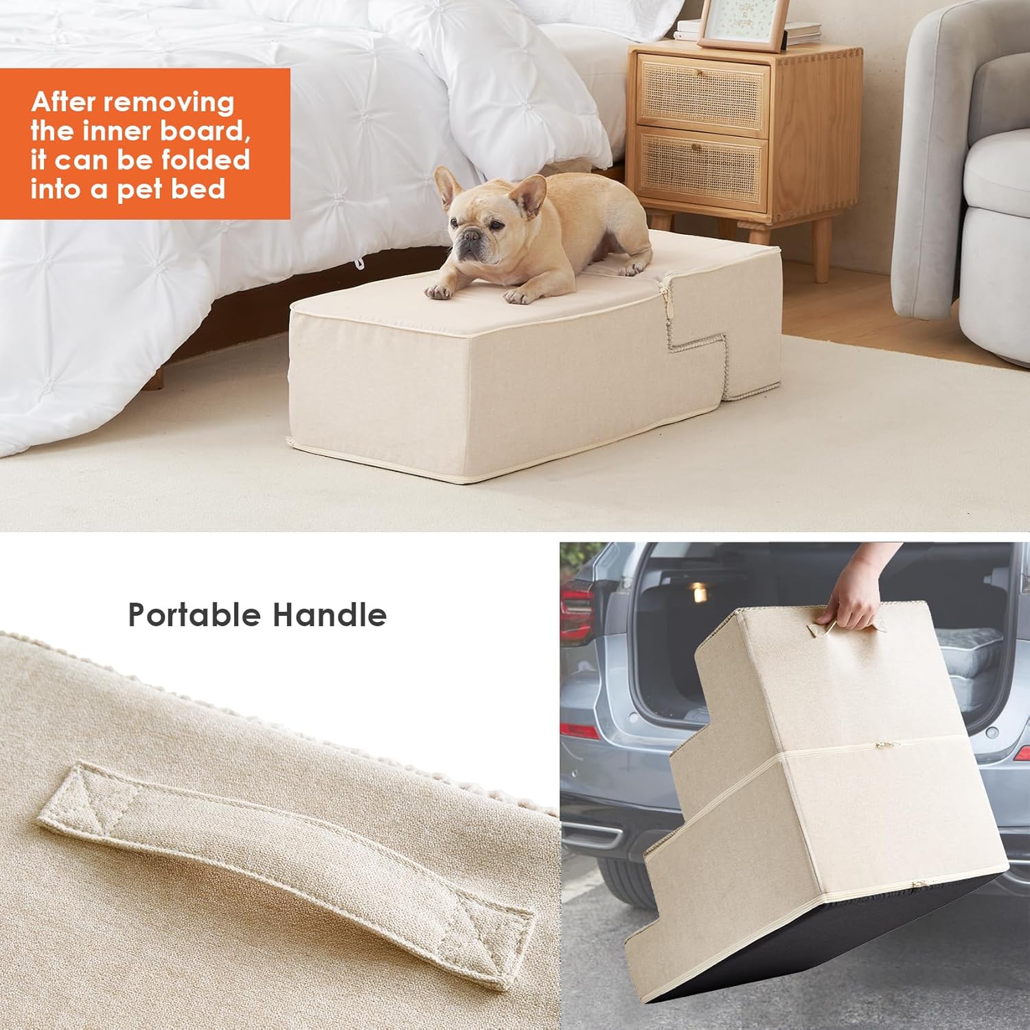 - EASY TO CLEAN - The dog step features a removable and washable cover, which can be cleaned by hand or in the washing machine. This saves you time and makes cleaning incredibly convenient.