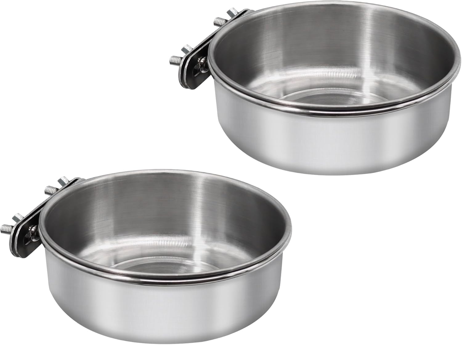2 Pcs Medium Bird Feeding Dish Cups,Parrot Food Bowl Cage with Clamp Holder Stainless Steel,Birdcage Coop Water Feeder for Cockatiel Parakeet Macaw Finches Lovebirds Small Animals (2 Pack, M)