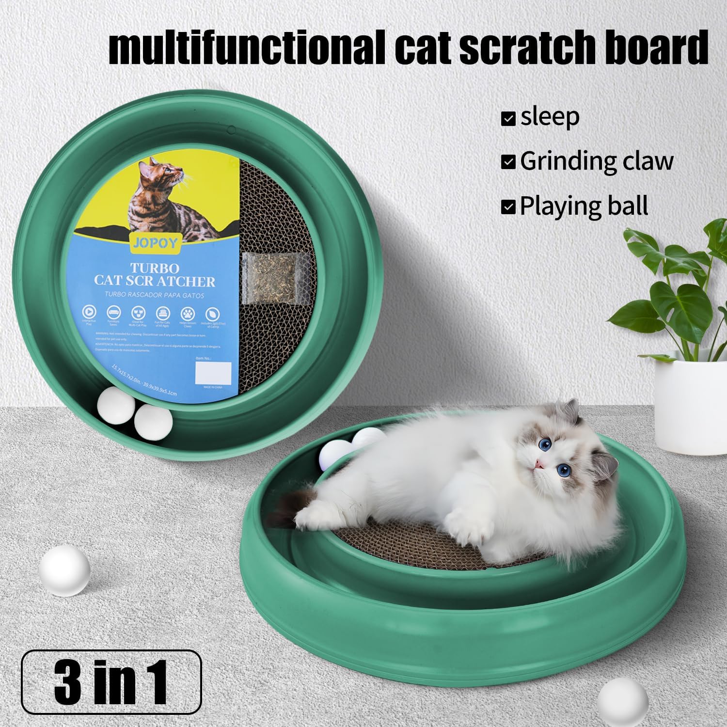 Interactive Cat Scratcher with Two Rotating Balls,Durable Scratch Pad for Indoor Play,Cardboard Cat Scratcher Pad with Cat Toy Ball Track and Catnip,2-in-1 Cat Toy (Green)