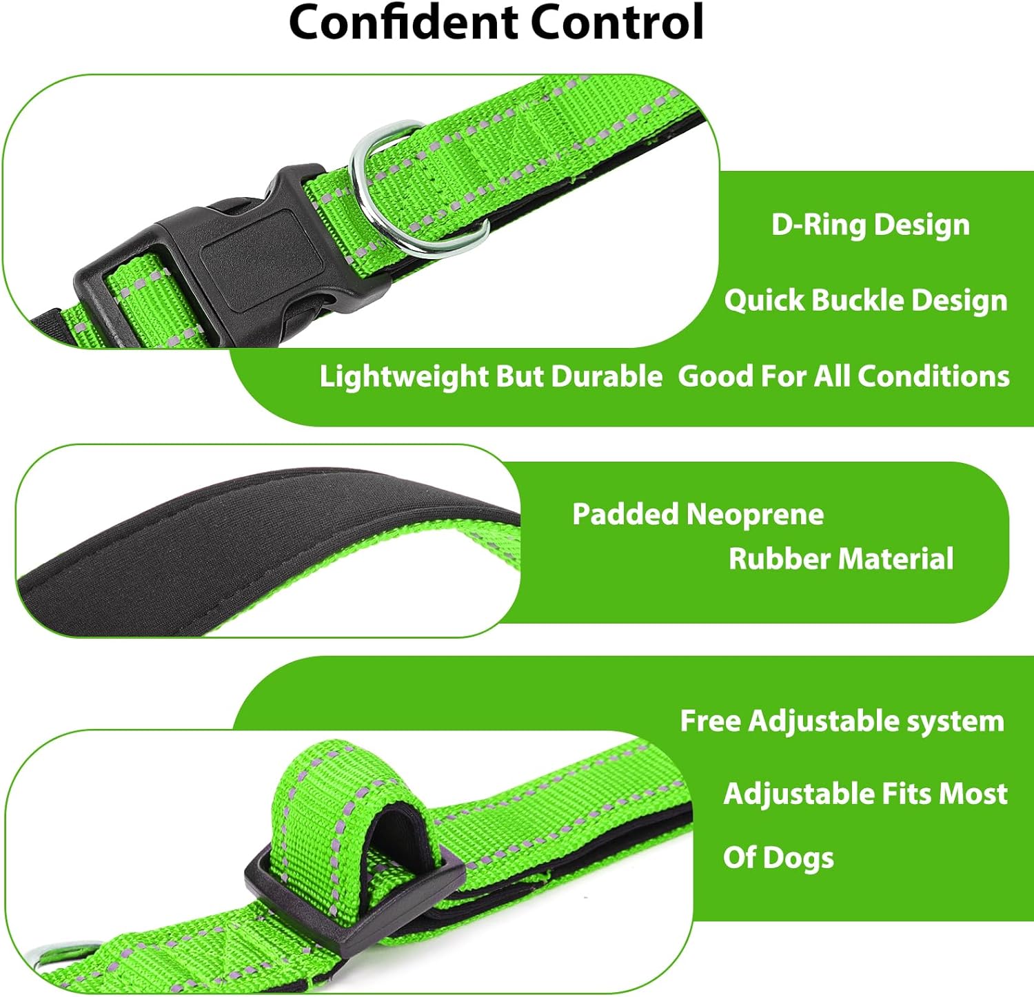 Reflective Dog Collar Padded with Soft Neoprene Breathable Quick Release Basic Dog Collars for Puppy Small Dogs Girl Green