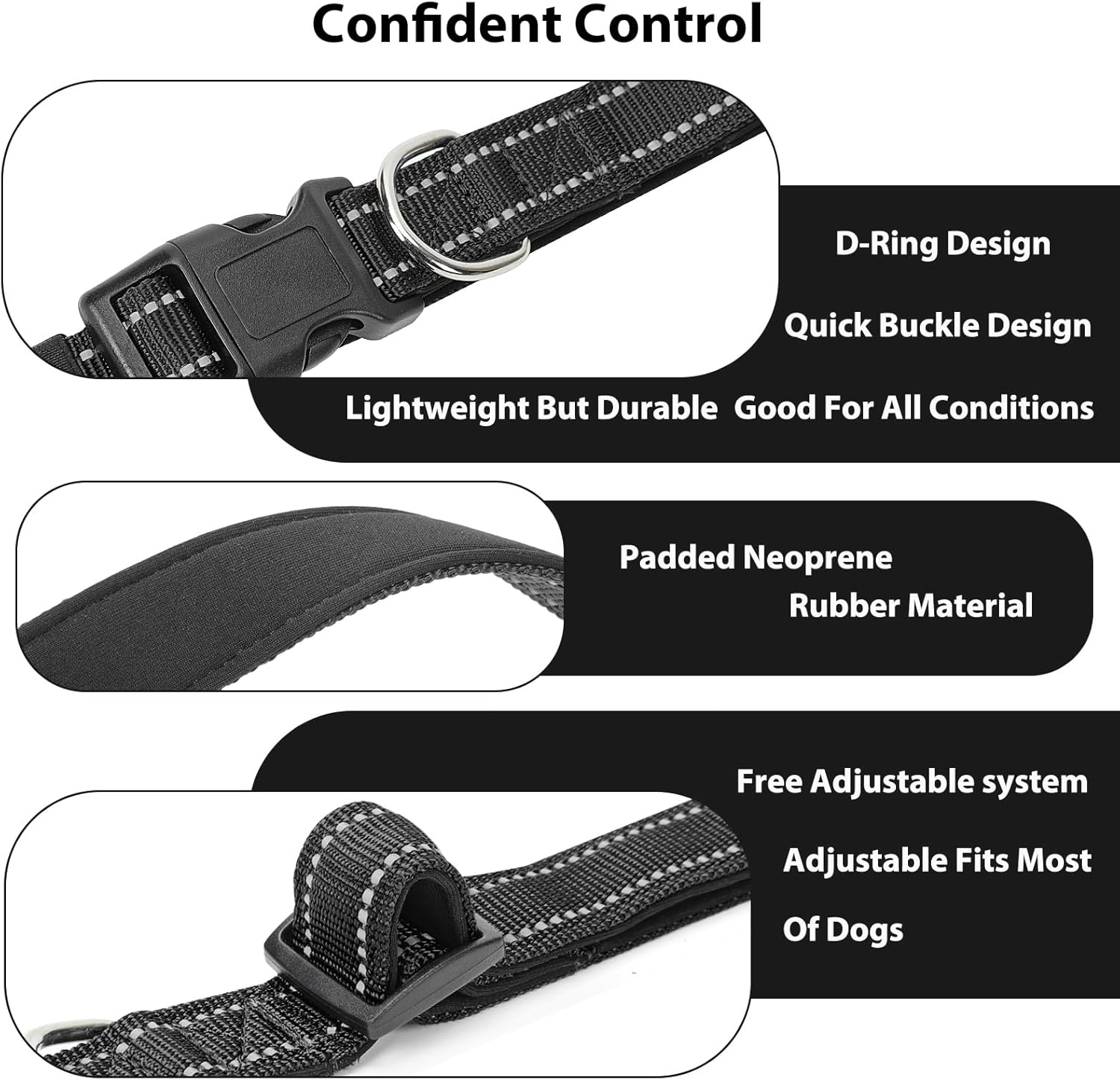 Reflective Dog Collar Padded with Soft Neoprene Breathable Quick Release Basic Dog Collars for Large Dogs Black Boy Girl