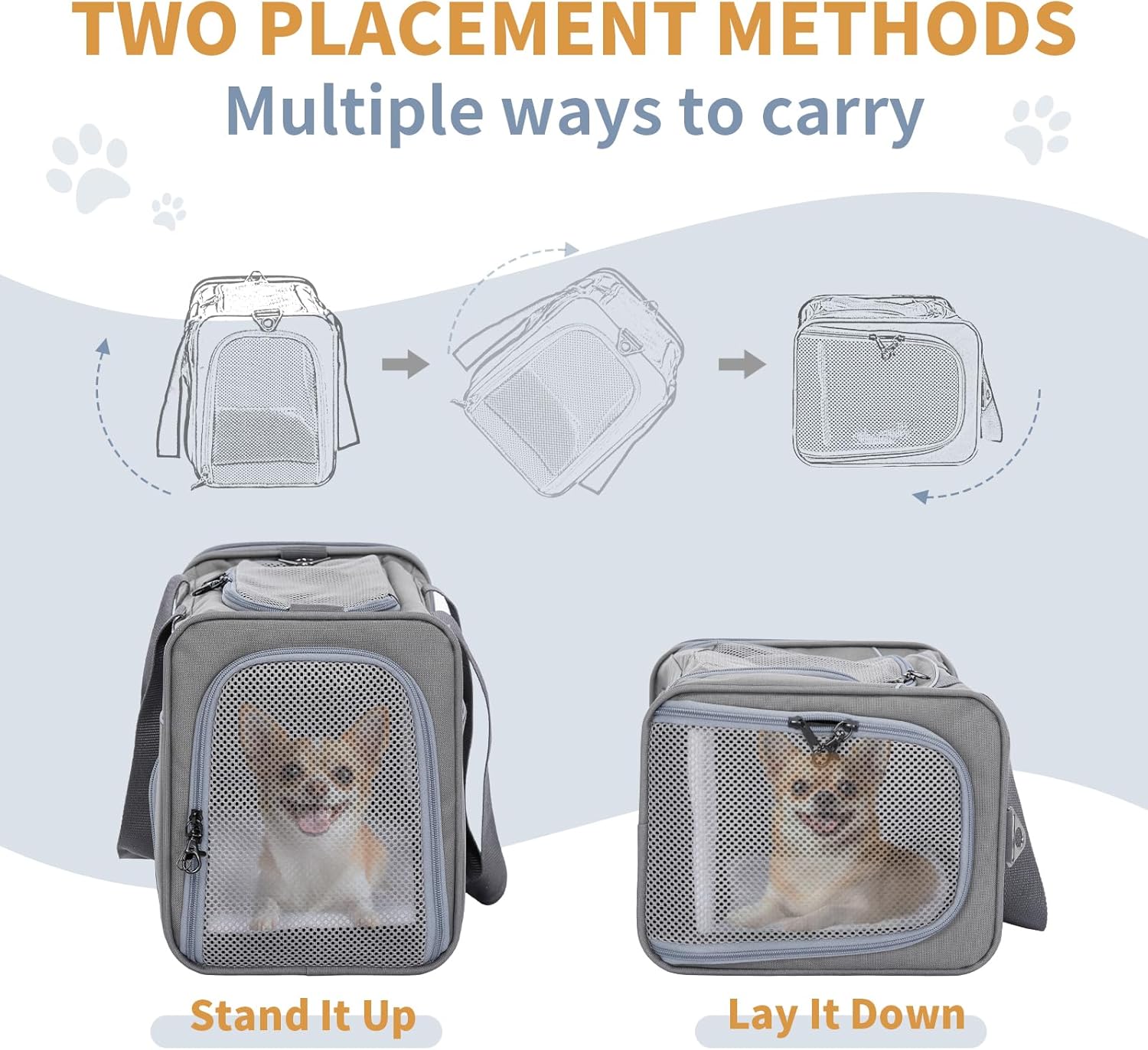 Petsfit Airline Approved Pet Carrier for Small Dogs & Cats, 19x9x12 TSA Approved Carrier, with Removable Dual-Sided Padding (2-Way Placement) - Fits Under Most Airplane Seats, Escape Proof (Gray)