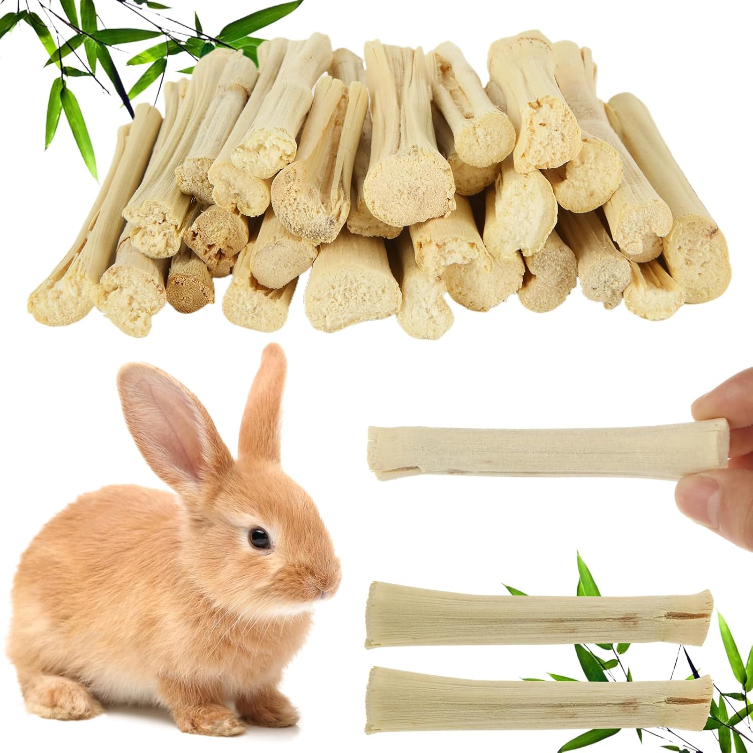 - Selected Natural Material: Selected high-quality bamboo sticks grow in the natural environment, after cuttingâ trimmingâ cleaningâ dryingâ sortingâ packaging. Bamboo sticks for rabbits are pure handmade, easy to save, not easy to moisture mold, safe and secure, loved by most small pets