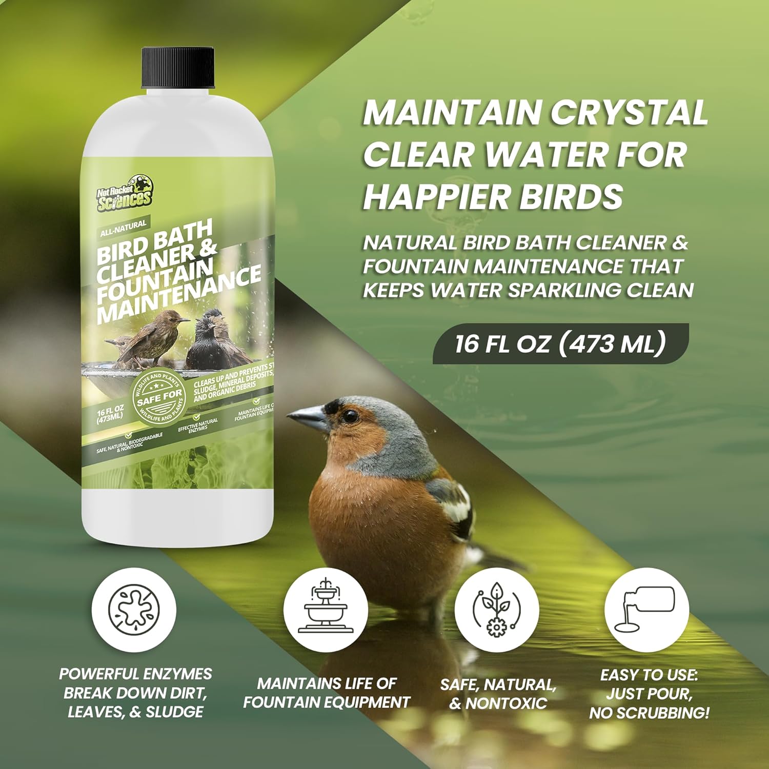 - SAFE FOR BIRDS: This bird bath & fountain clarifier is natural, non-toxic & safe for birds and wildlife. Itβs ideal as a birdbath & fountain maintenance cleaner that safely prevents organic build up.