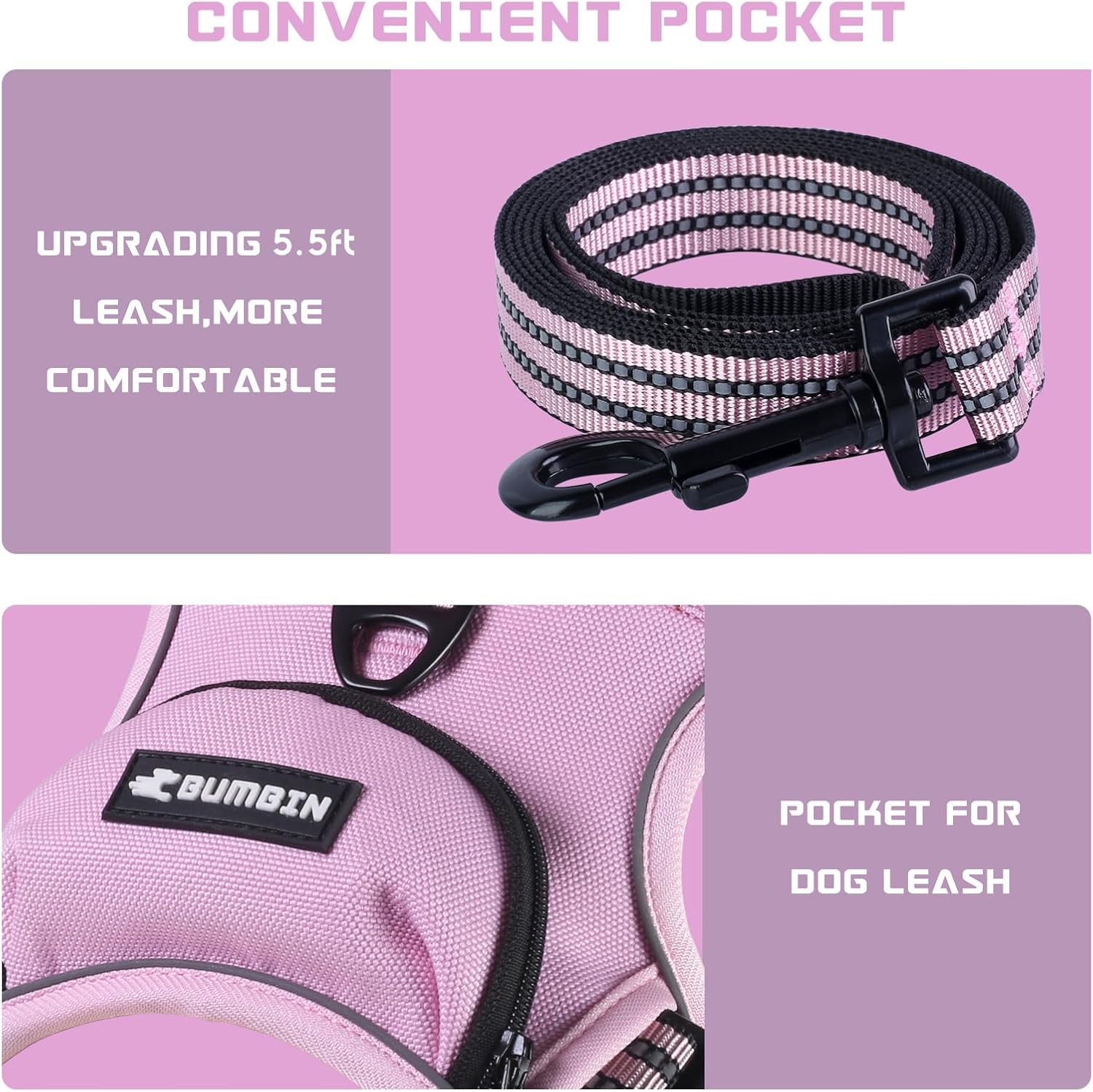 BUMBIN Dog Harness for Large Dogs, No Pull Adjustable No Choke Pet Vest with Dog Leash Fit Smart Reflective Pet Walking Harness for Training Easy Control Soft Handle Pink L