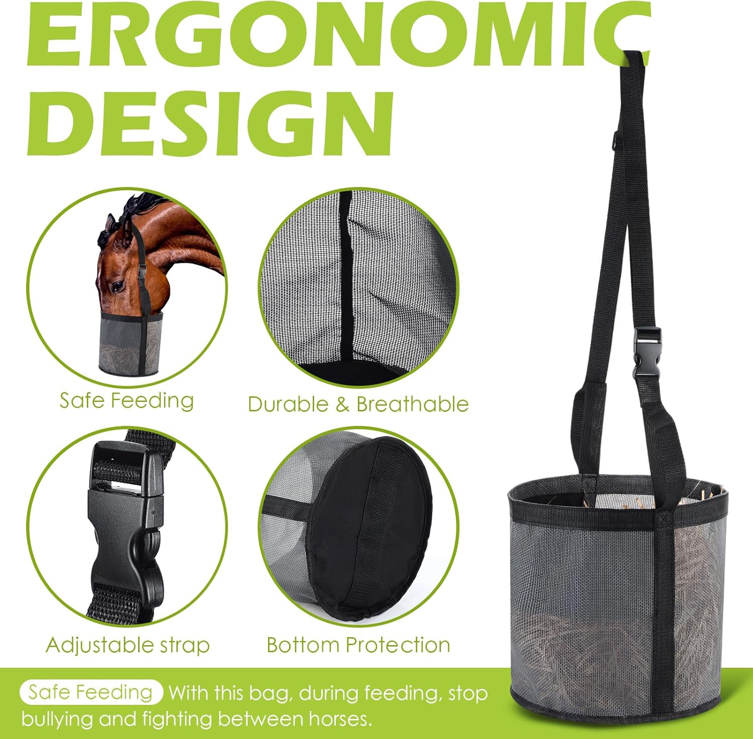 - Reduce Food Waste: these horse feed bags are designed to keep horses out of complex feeding environments and reduce food waste from eating and head tingling