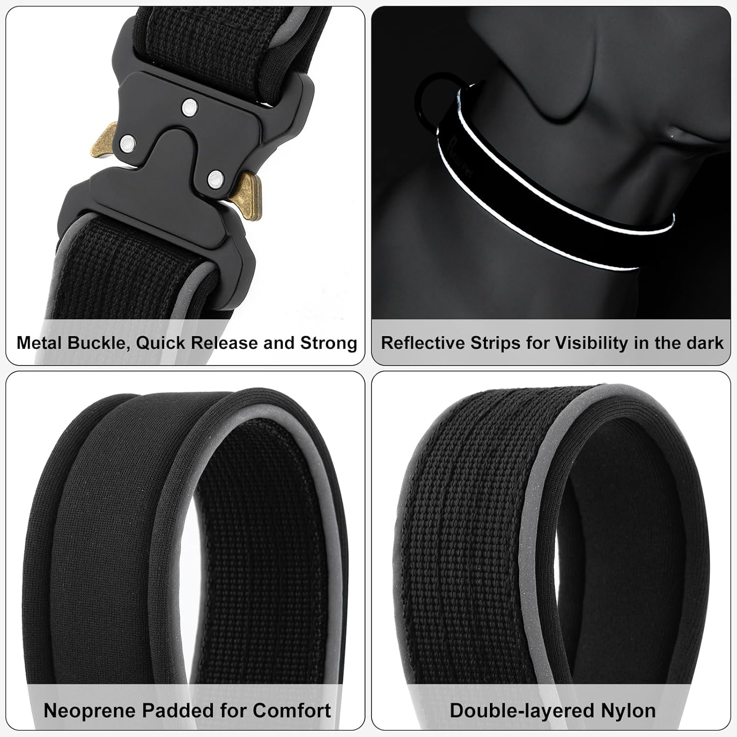 - Soft Neoprene Padded Comfort. Comfort is key for our four-legged friends. That's why our military collar features soft padding, providing your dog with comfort during walks, hikes, or training sessions. Say goodbye to chafing or discomfort – our collar keeps your pet content and secure.