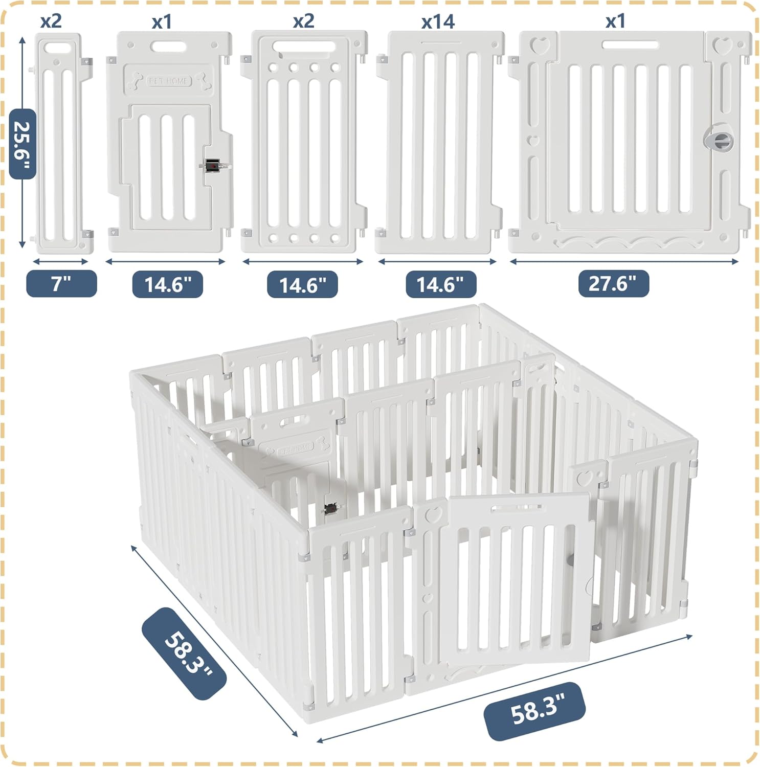 2 Room Dog Playpen with Door,DIY Shape Combination Puppy Pen,16-Panel+2 Link Piece+Large Door+Small Door,25.5" H Dog Fence,Non-Slip&Secure Pet Gate,Easy to Assemble
