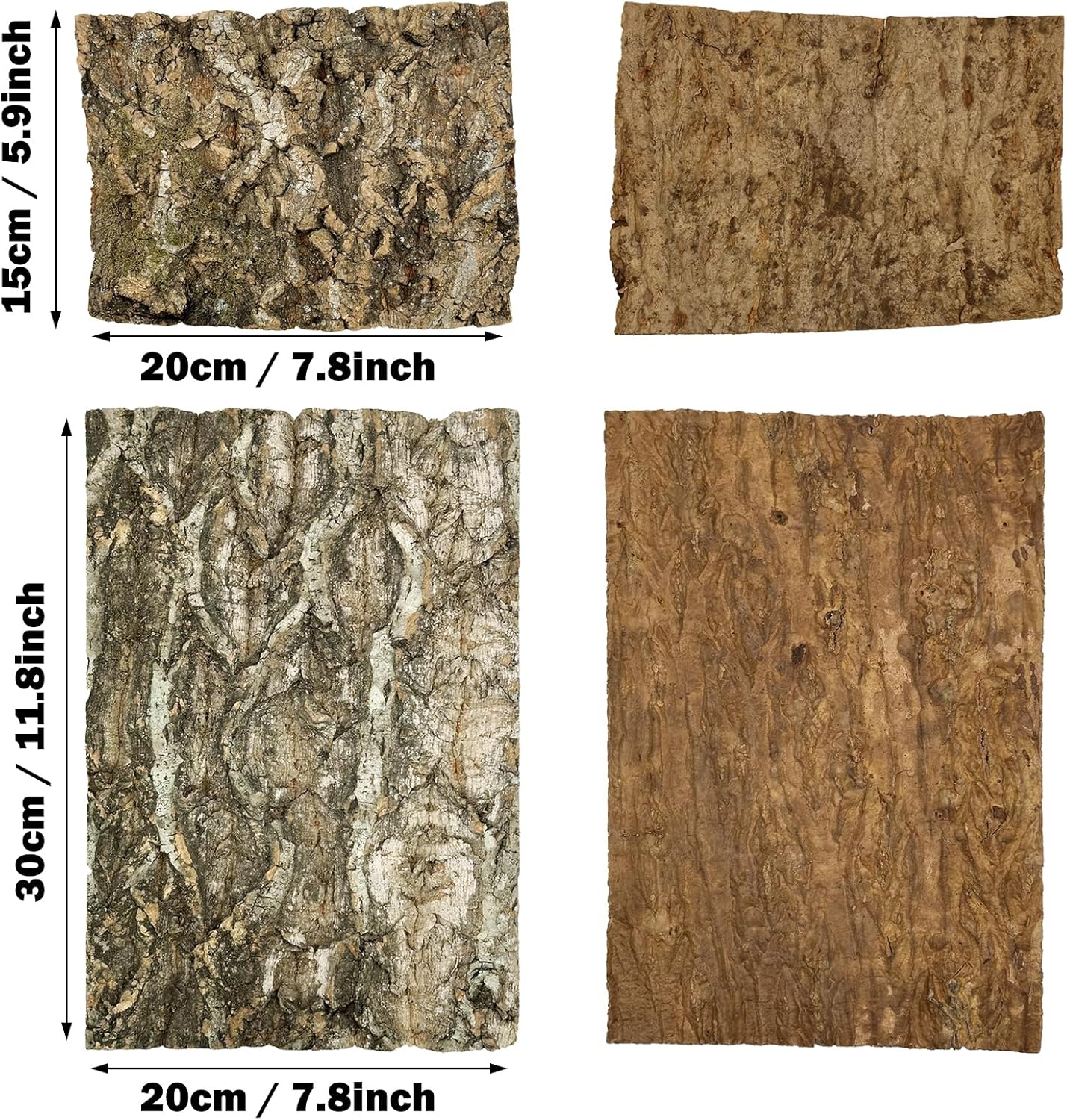 - 【Size】The package contains 3 pieces of cork bark, with a size of 20 x 30cm/ 7.87 x 11.8 inch, 15 x 20cm/ 5.91 x 7.87 inch.